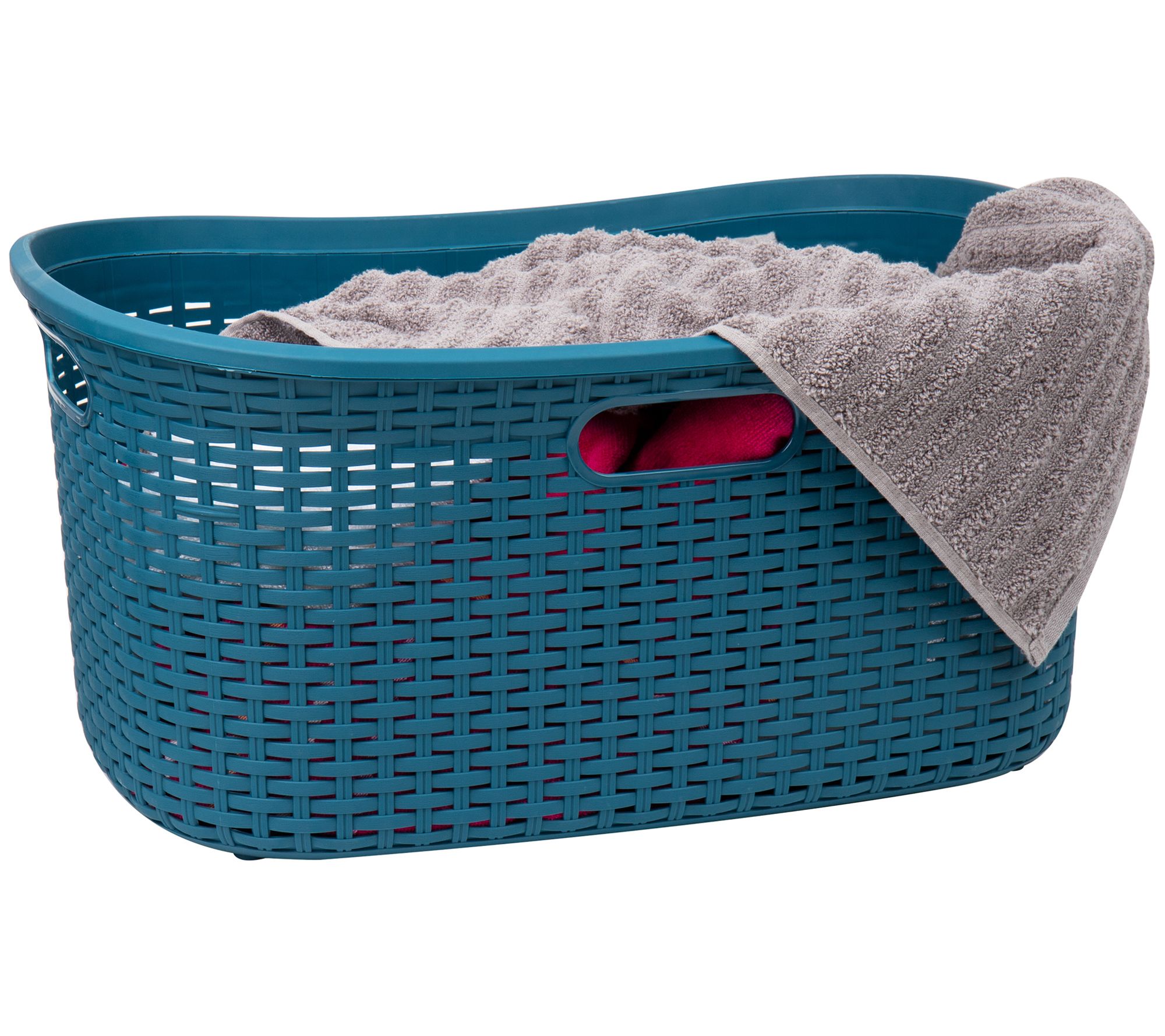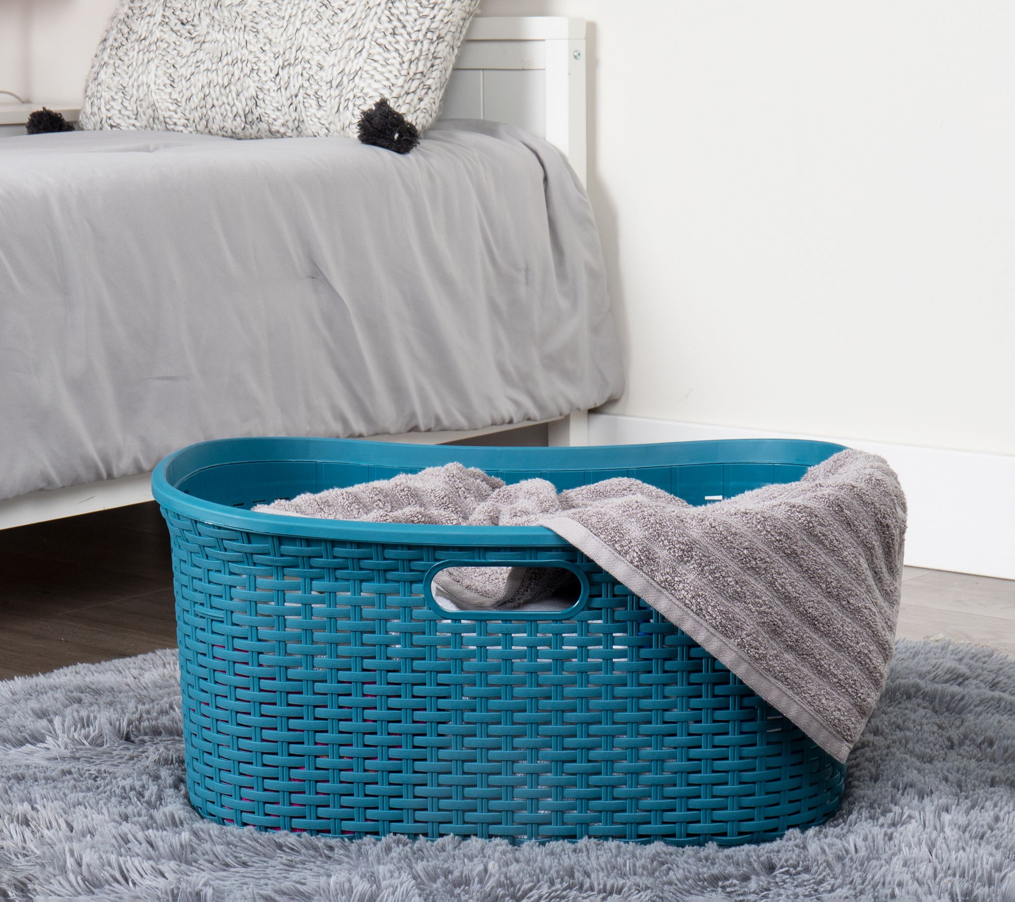 Keep your home clutter-free and looking amazing with this laundry basket, a stylish and versatile hamper made from durable plastic, with a wicker design that seamlessly blends into any room. Perfect for laundry, it's also great at storing toys, sports equipment, and more. From Mind Reader.