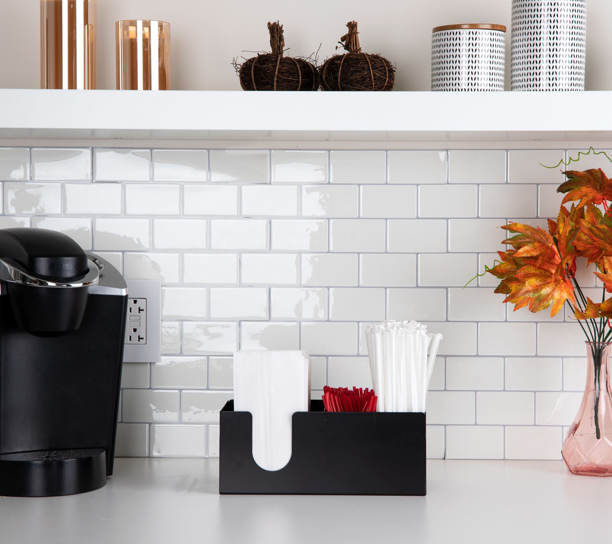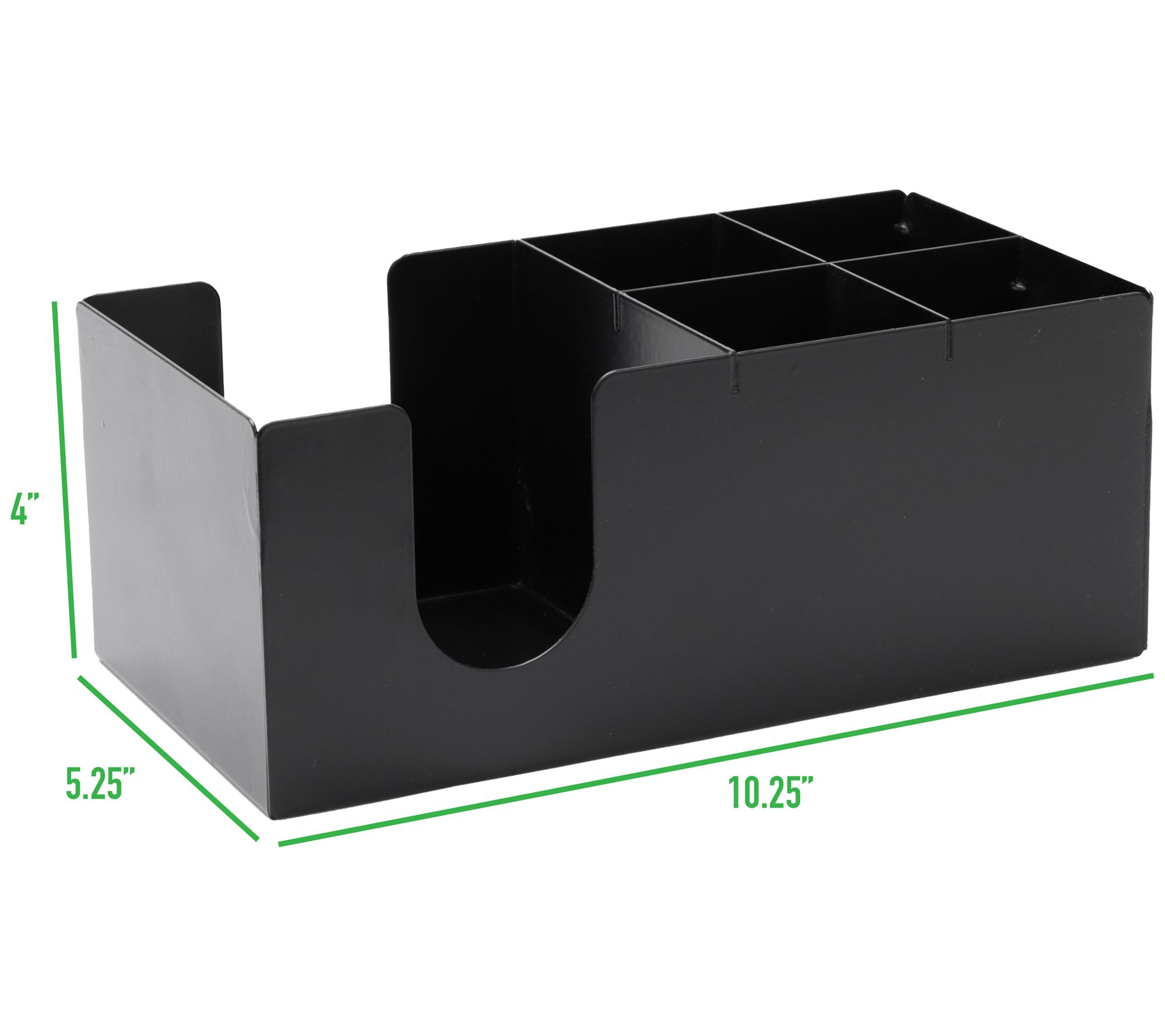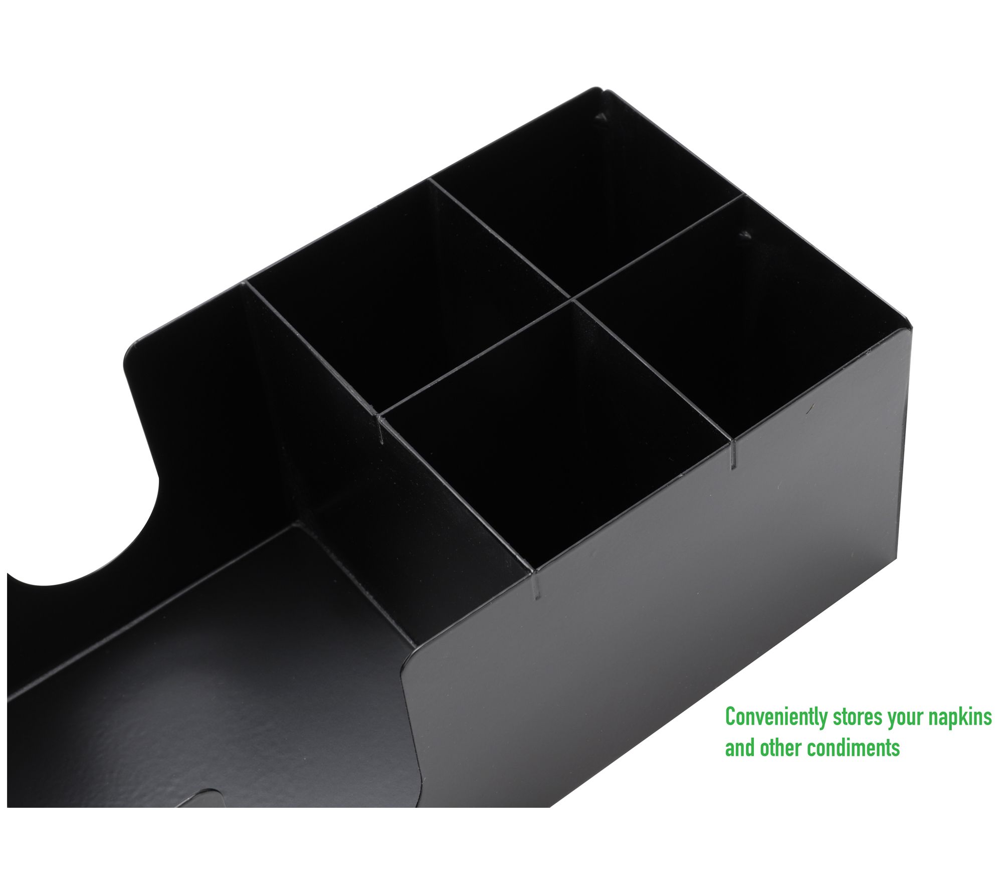 Save space and contain clutter with this five-compartment holder designed for napkins, condiments, utensils, and more. From Mind Reader.