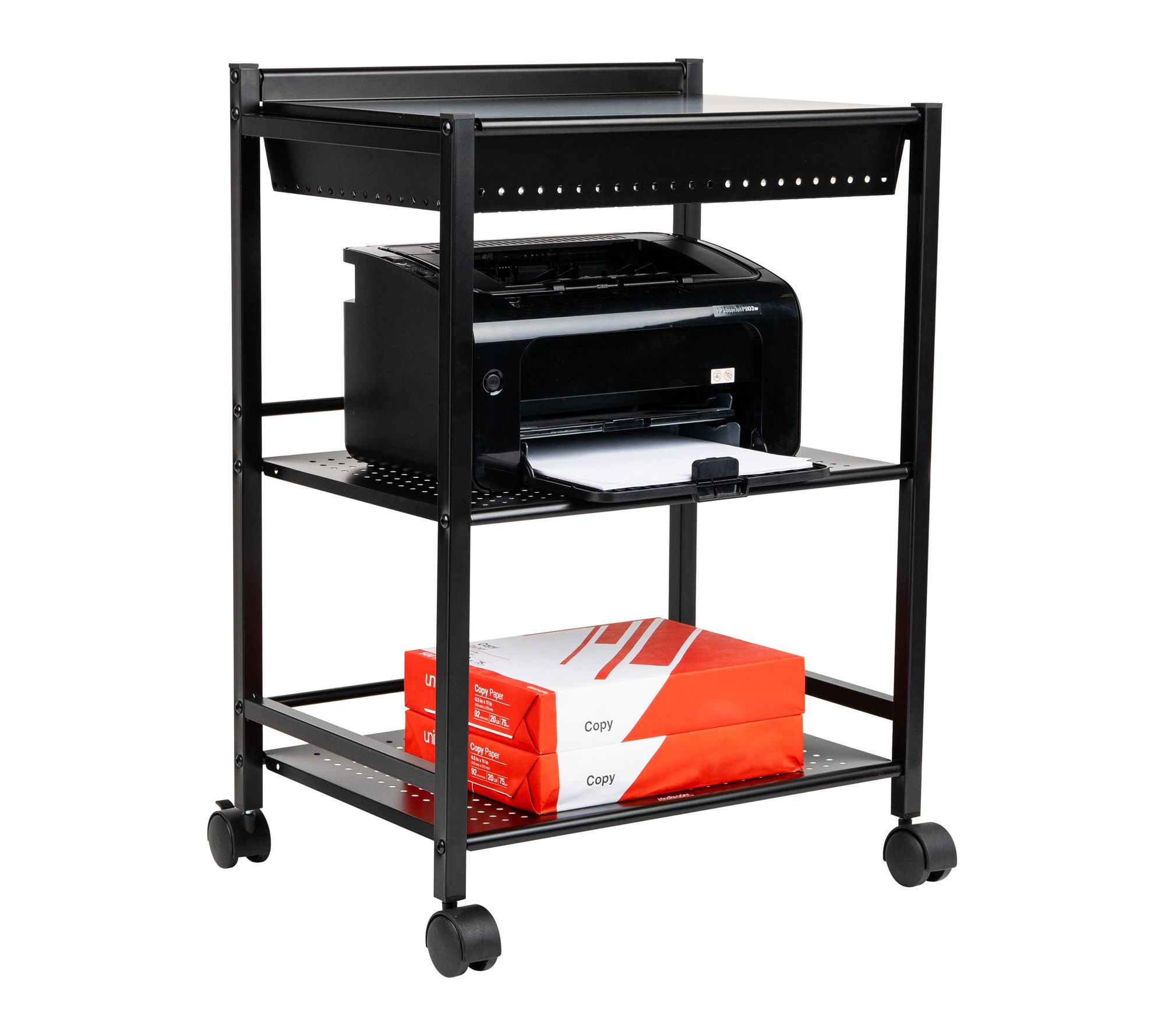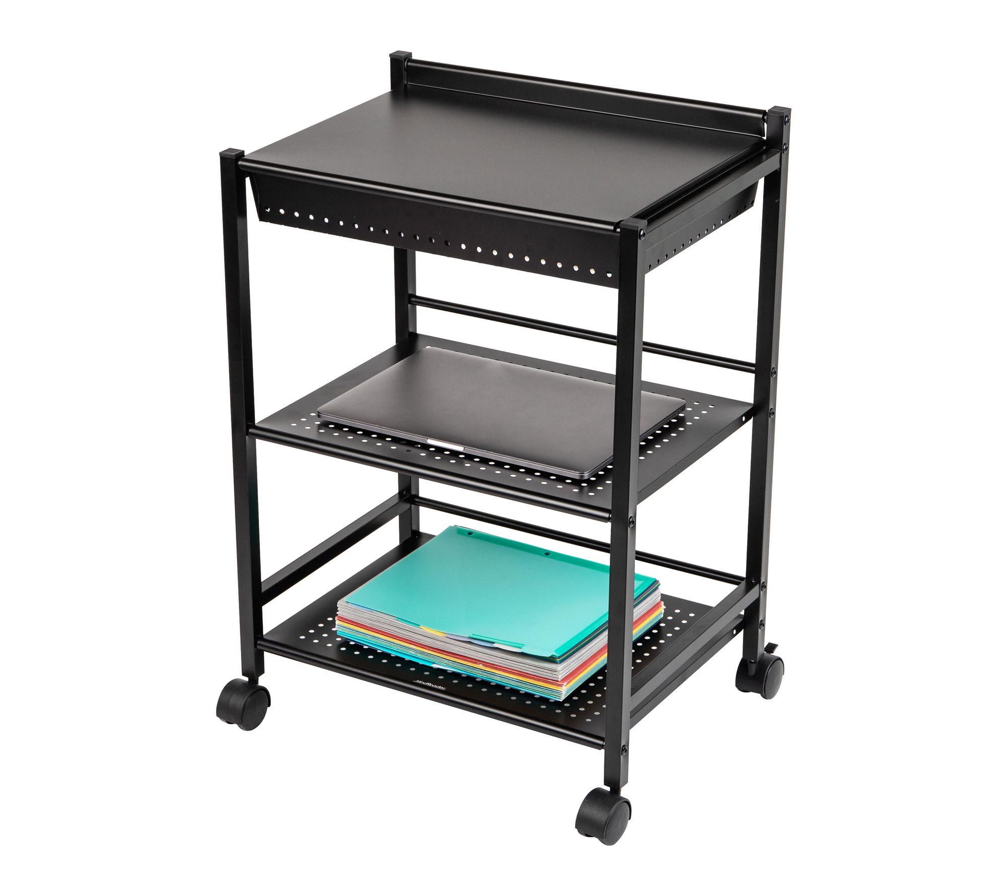Tackle busy days with convenience -- the Mind Reader cart is an organizational essential for your home office, craft room, or anywhere extra storage is needed. The sleek rolling cart easily holds notebooks, art supplies, or personal items thanks to two shelves and a covered compartment, while locking casters let you keep it in place or roll it wherever it's needed. From Mind Reader.