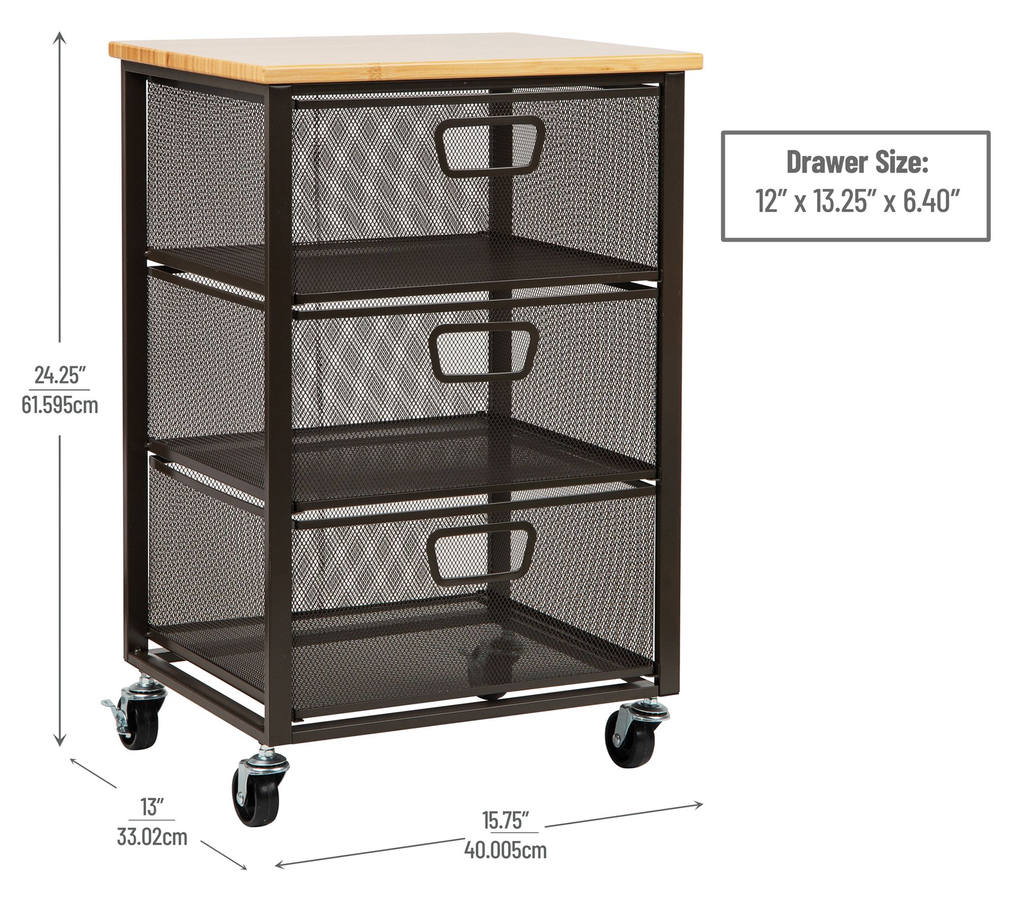 Effortlessly organize your space with the Mind Reader cart with drawers office organizer. This sleek and modern rolling cabinet offers ample storage with three spacious drawers and a durable wooden top, perfect for keeping your office supplies, documents, or craft materials tidy and easily accessible. From Mind Reader.