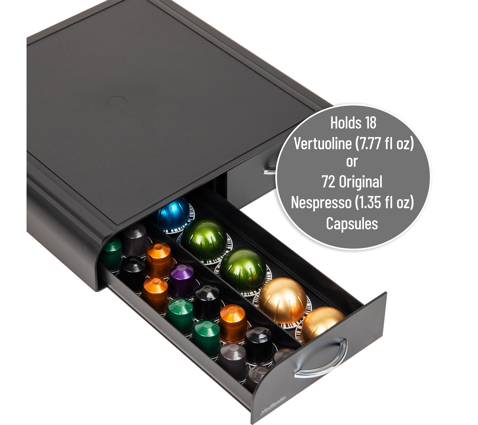 • Stores up to 18 VertuoLine or 72 Original Nespresso capsules, capsules not included