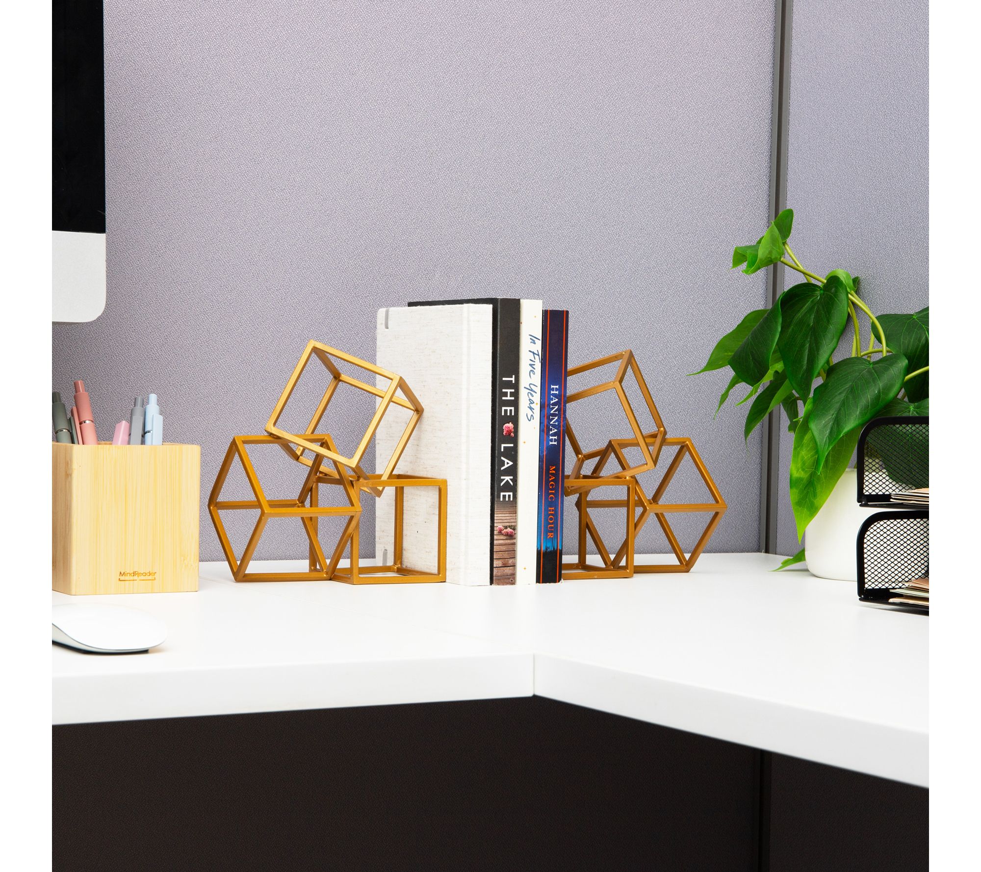 Mind Reader Decorative Geometric Cube Bookends,Set of 2