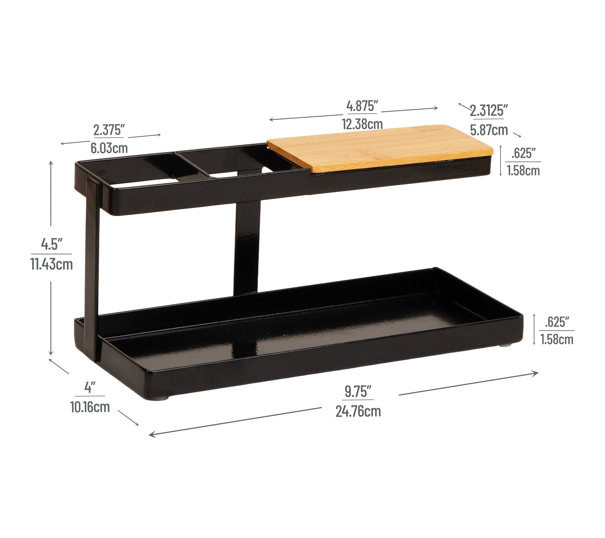 • Raised wood shelf for watches or earbuds