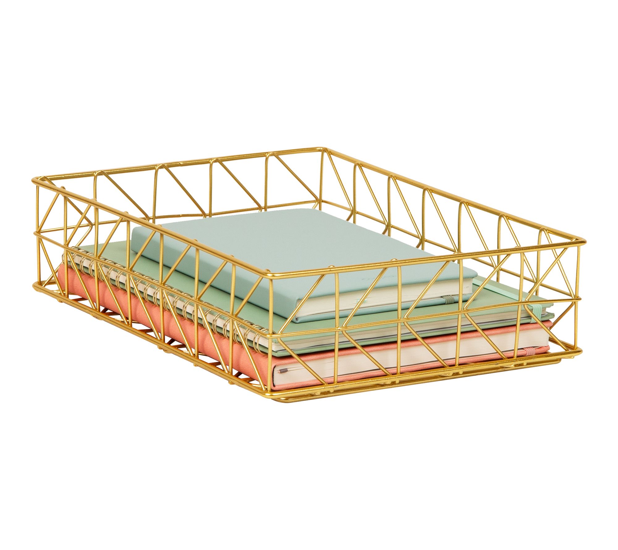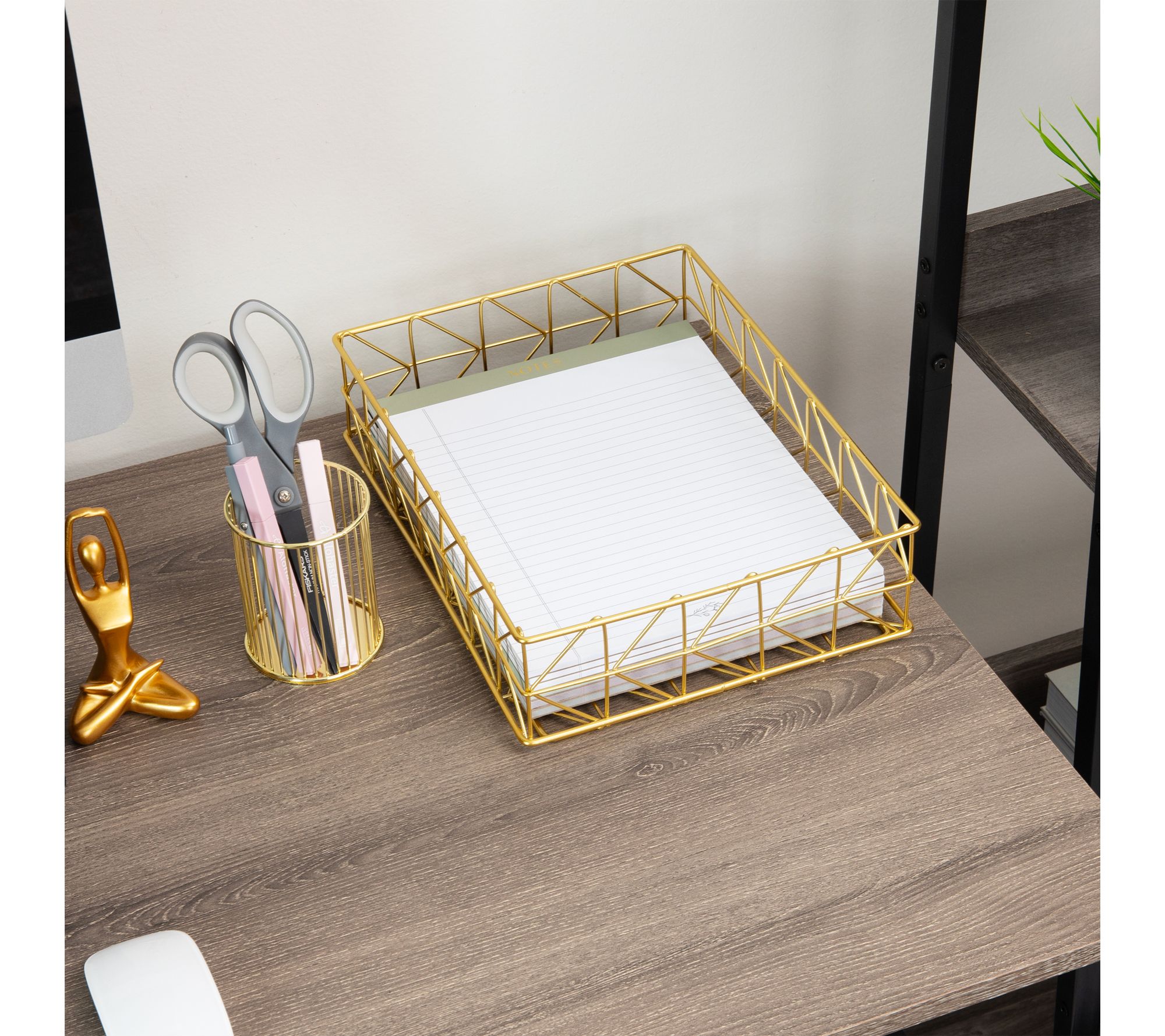 Elevate your everyday routine with a desktop organizer that blends glamorous style with practical function. The Mind Reader Gold Geometric Document Organizer keeps paperwork, folders, and office supplies neatly sorted so you're always ready for work, study, or paying bills. Its chic geometric design transforms any workspace into a sophisticated, clutter-free zone. From Mind Reader.