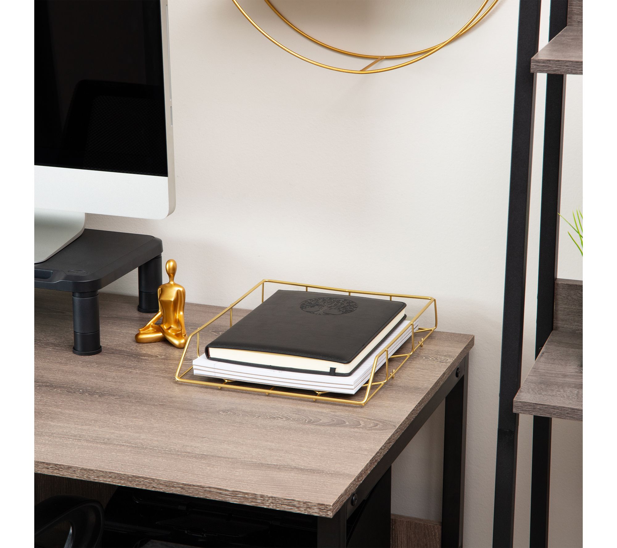 Mind Reader Gold Geometric Paper Tray, Modern Organizer