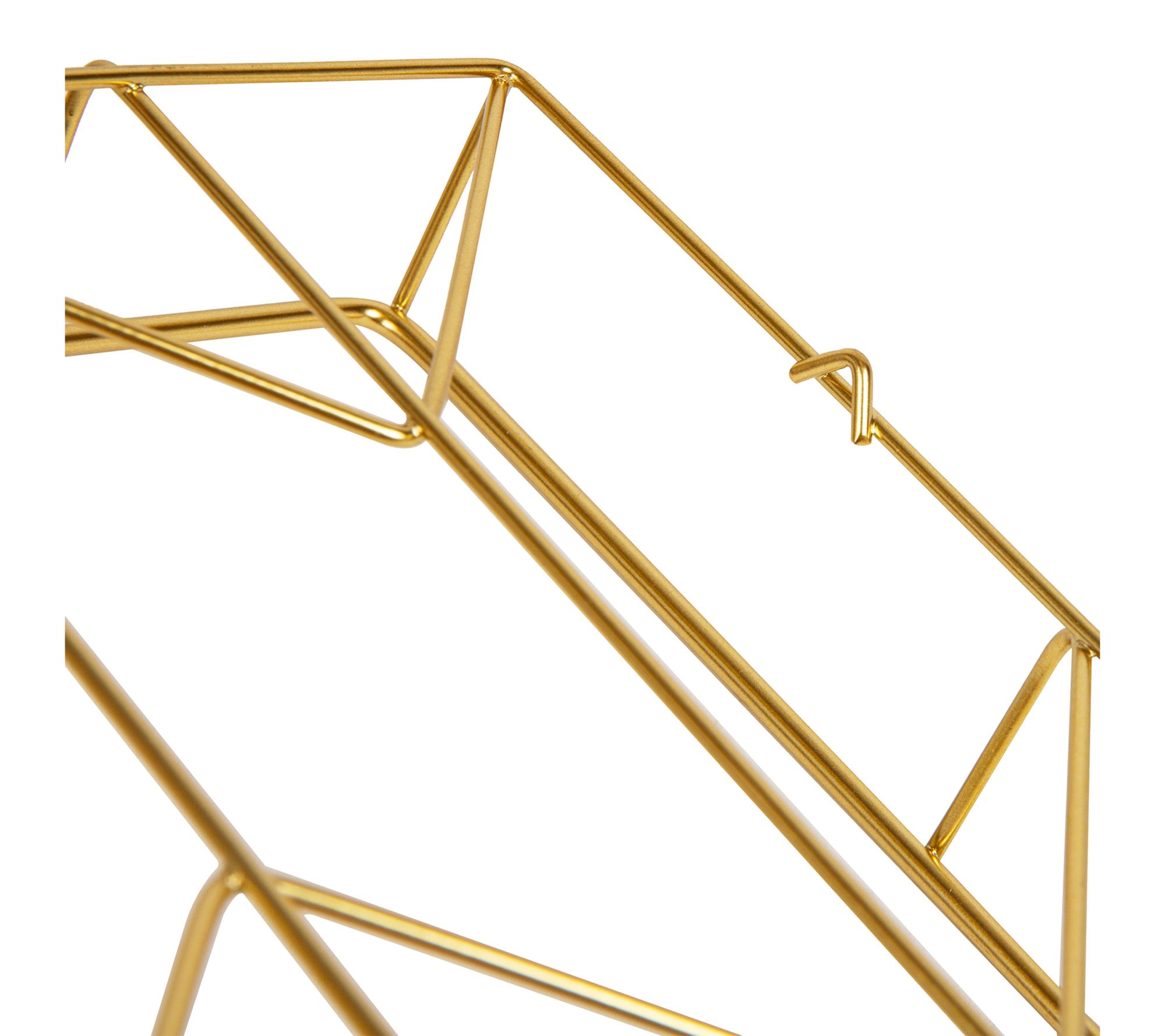 Add modern flair to your home office with this geometric paper tray, designed to keep documents and supplies neatly organized while elevating your workspace with a touch of glamour. Its open-ended structure and deep capacity help declutter your desk, making it ideal for students, professionals, or anyone seeking stylish functionality. From Mind Reader.