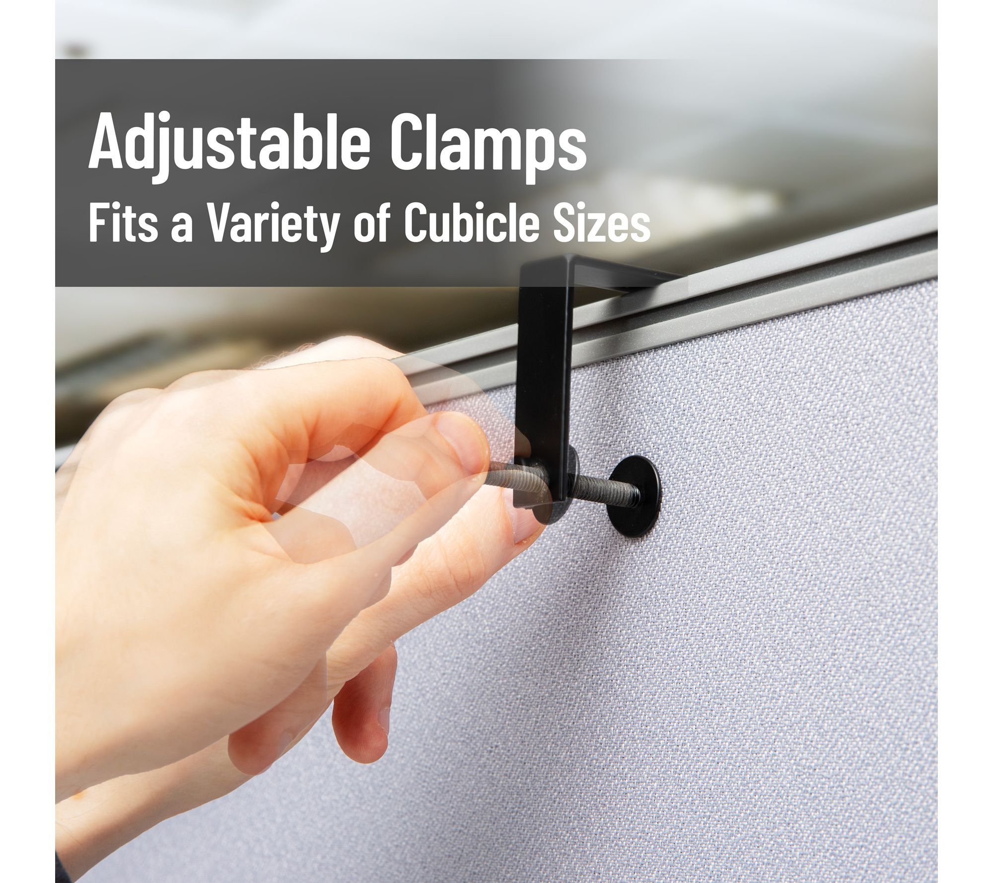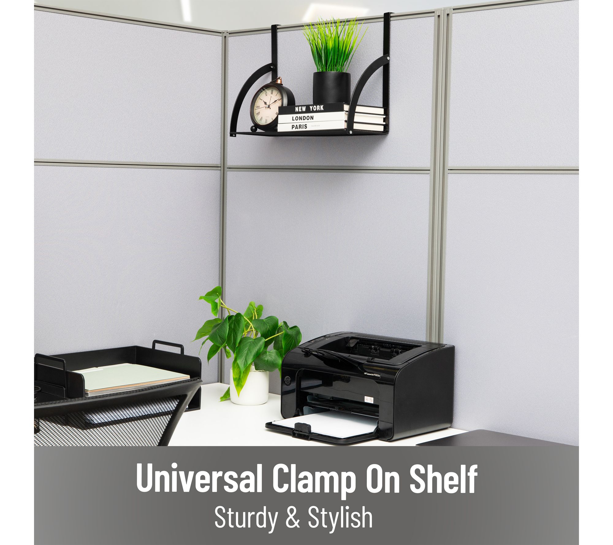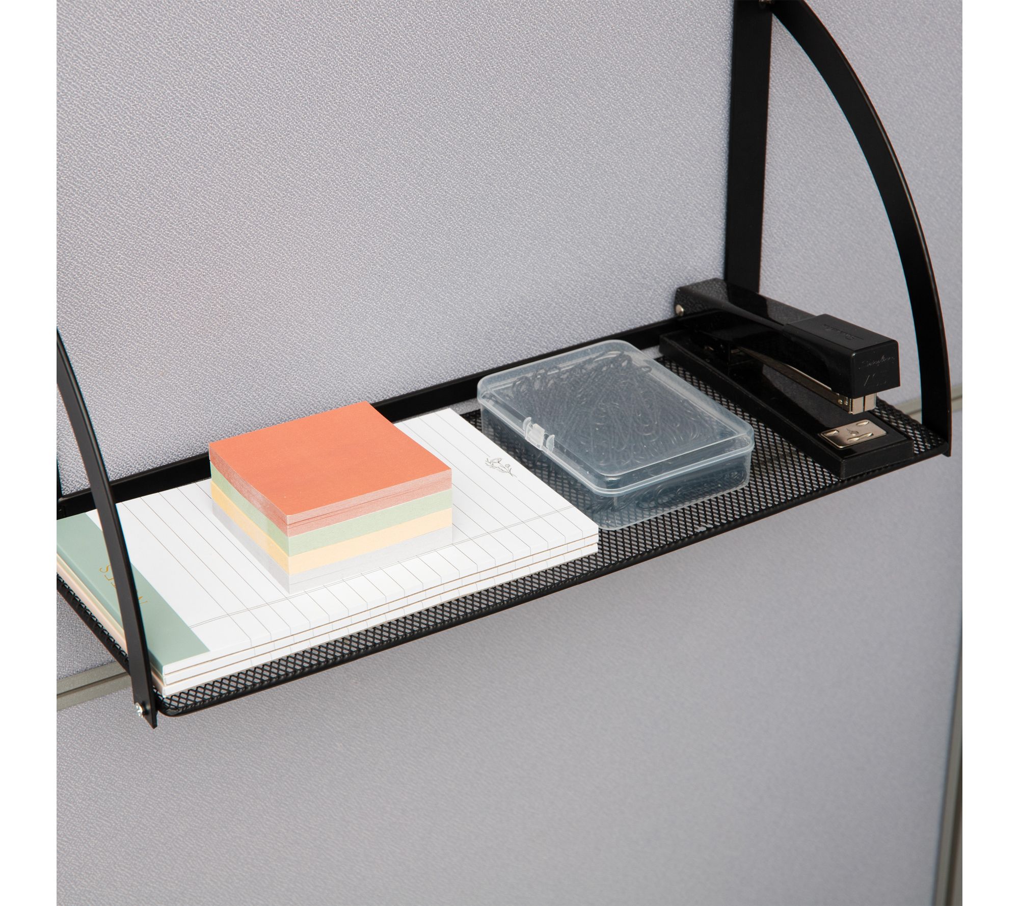 Clear off your desktop clutter and showcase your personality with this hanging cubicle shelf organizer. The sleek metal shelf effortlessly blends durability with design, giving you the space to store office supplies while displaying favorite photos or plants. Simple to install and adjustable to fit a variety of workspaces, it makes everyday organization easy. From Mind Reader.