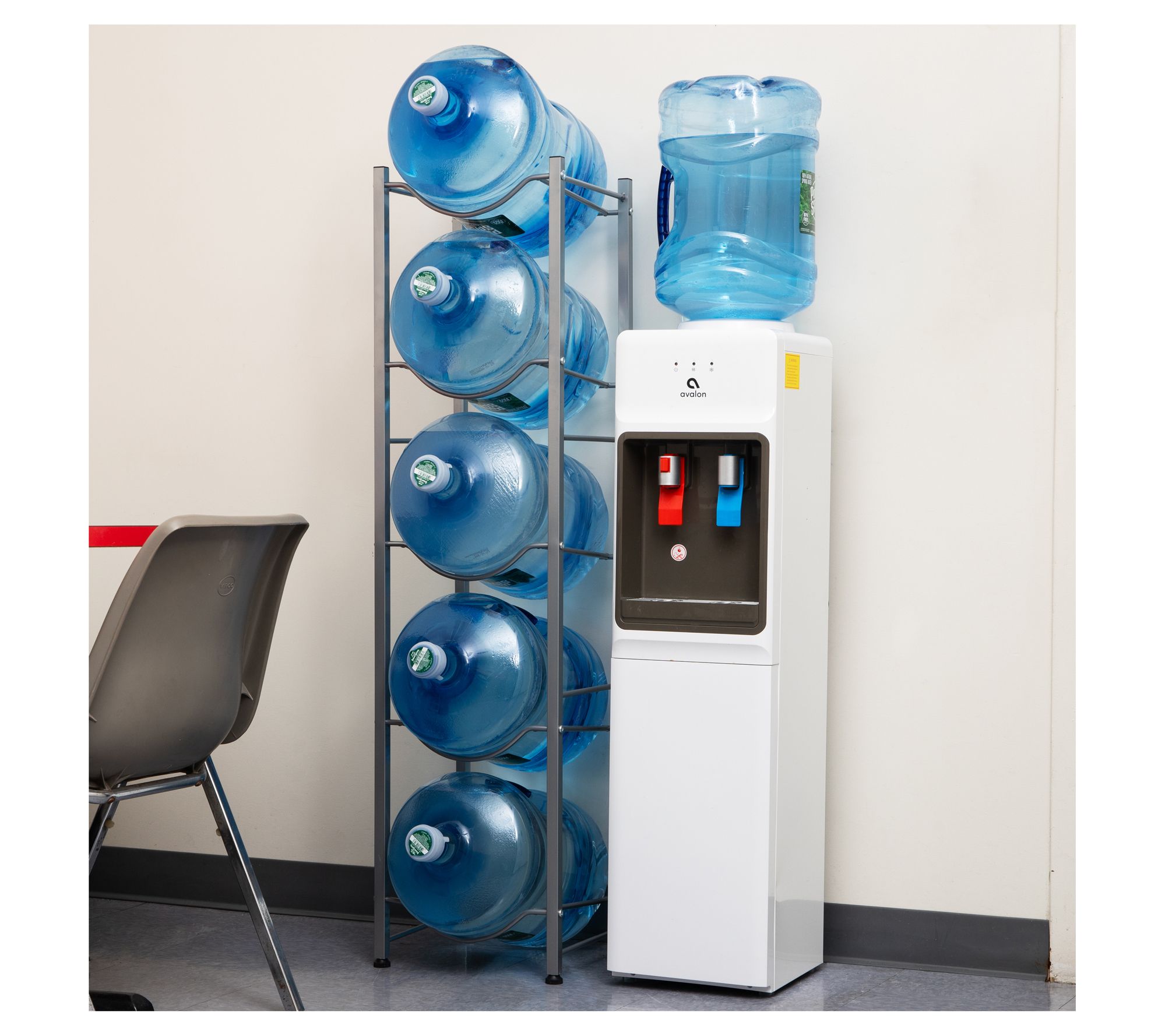 • Holds five 5-gal water jugs