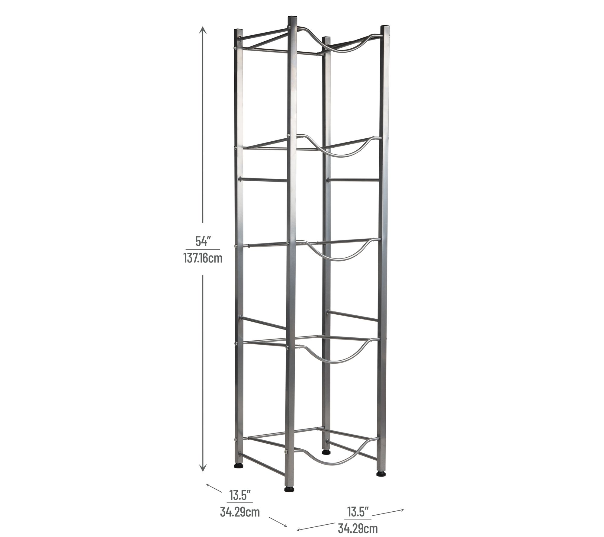 Keep bulky water jugs neatly in place with this heavy duty 5-tier jug holder -- an ideal organizer for busy kitchens, pantries, or office breakrooms where space is at a premium. Horizontal storage offers easy access, while the sleek metal frame meshes with modern and classic decor alike. Assembly is simple, so you can reclaim your floor space in just a few steps. From Mind Reader.