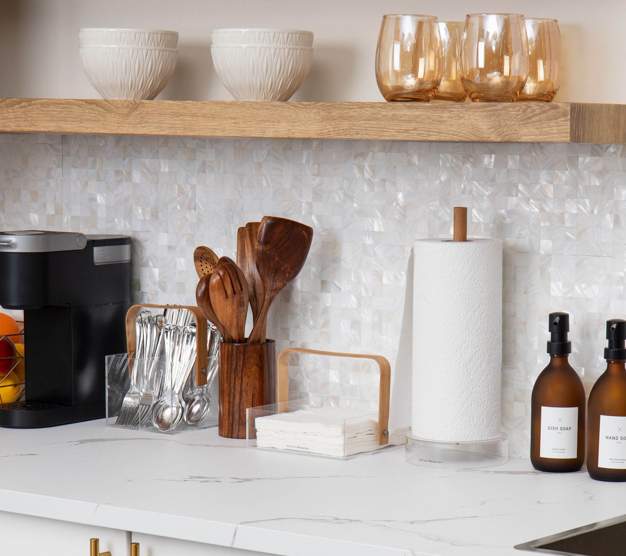 Give your countertops a sleek and streamlined look with the help of this beautiful paper towel holder. It's constructed from acrylic and bamboo to stand strong and lend a modern vibe to any decor. From Mind Reader.
