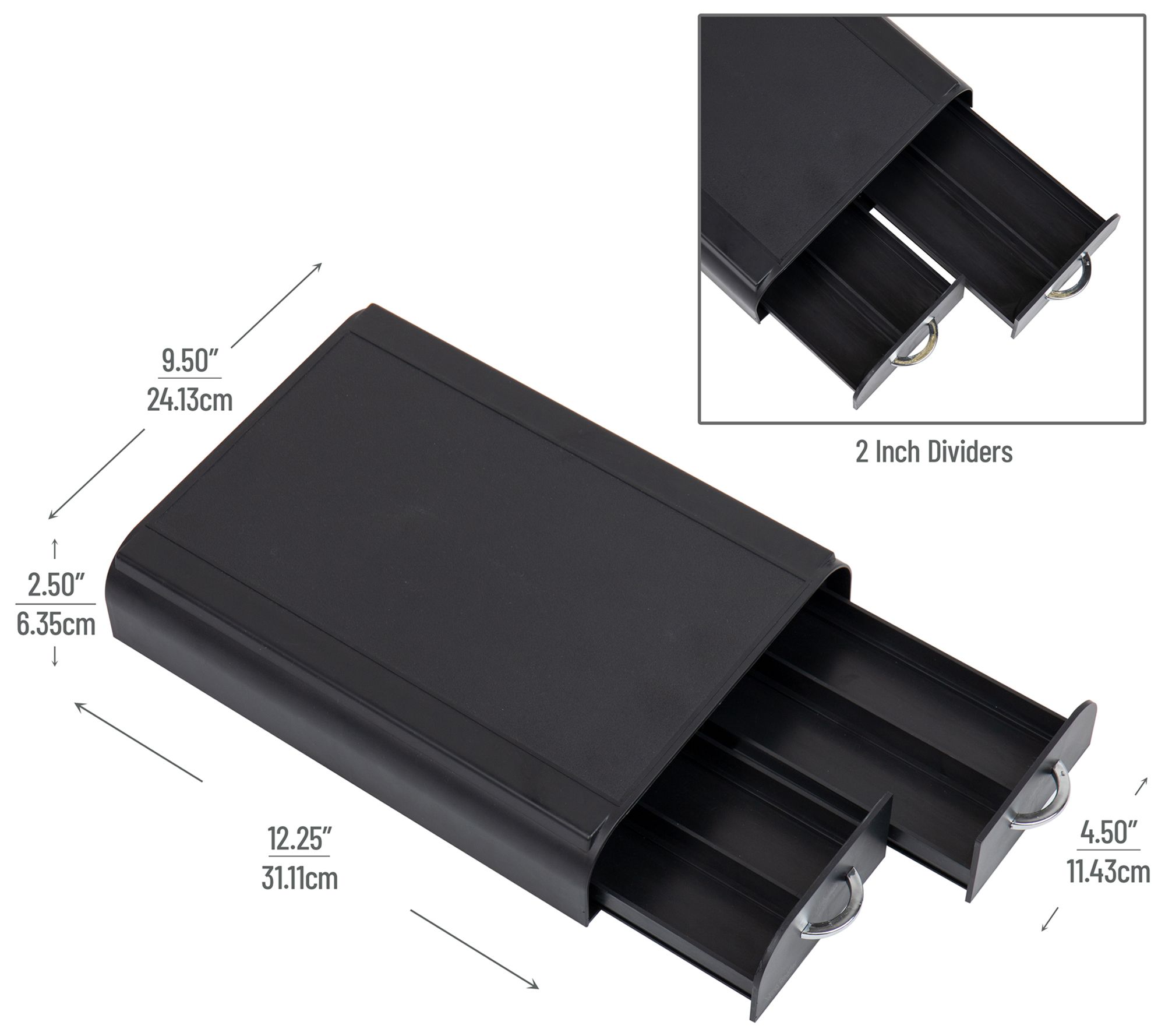 • Measures 12.25" long x 9.5" wide x 2.5" tall