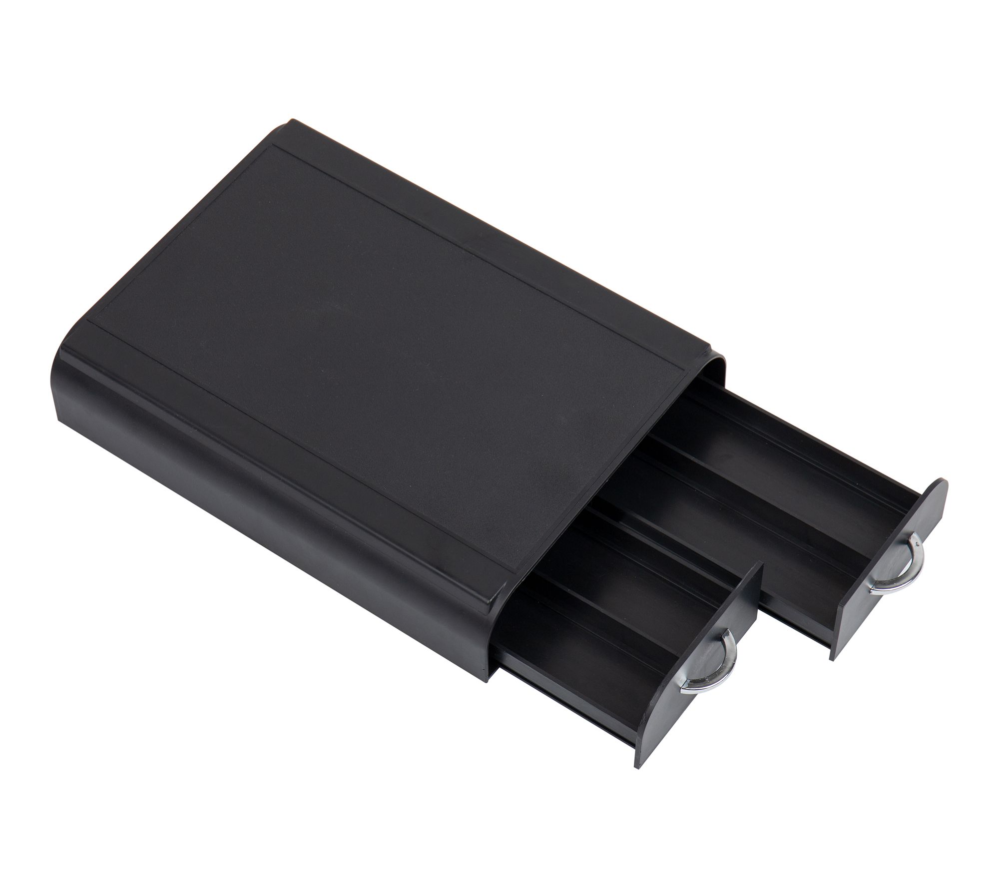 Start your morning with ease using this convenient single-serve coffee pod organizer. Two drawers neatly hold up to 24 pods, helping you keep your favorite flavors within reach and your countertop clutter-free. Rubber grips on the base add stability, while the compact size fits neatly under most coffee brewers. Wipe clean for easy maintenance.