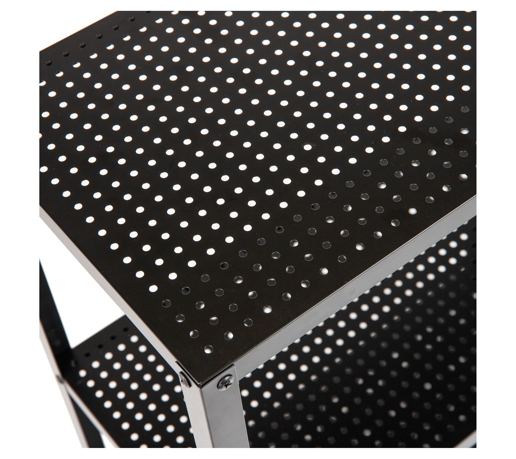 • Three-tier shelf design with perforated pattern for ventilation and drainage