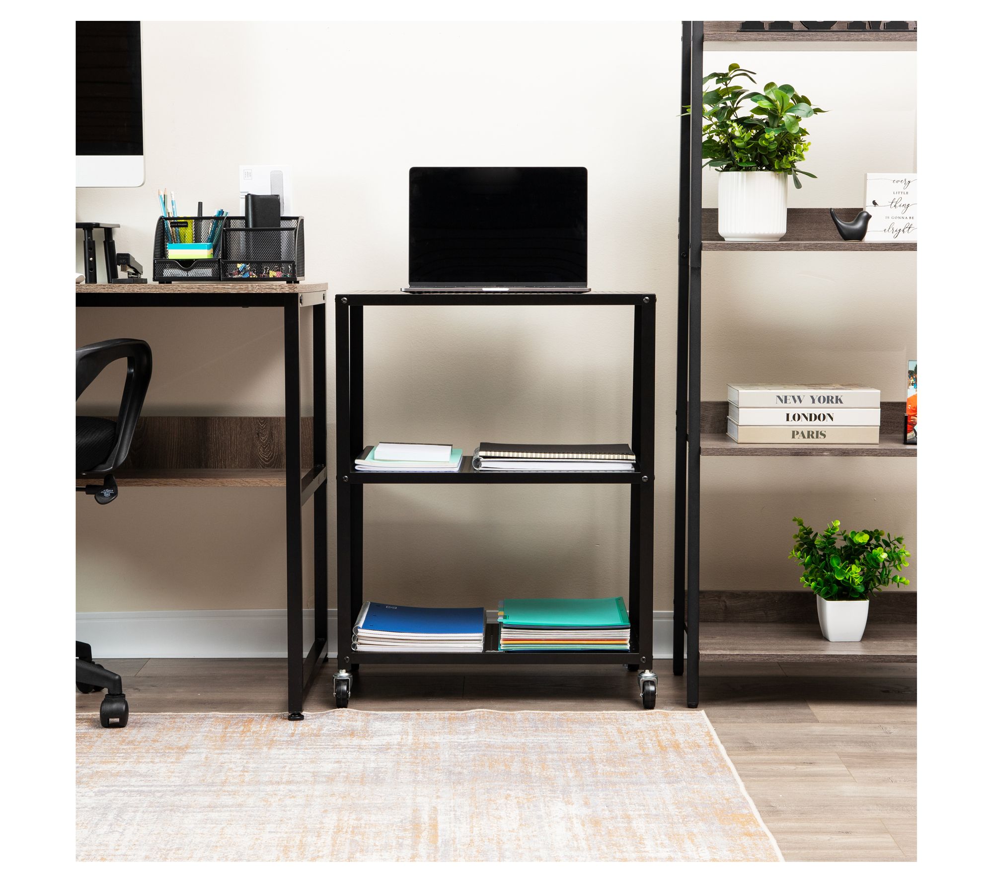 • Measures 23"L x 12"W x 30"H; each shelf supports up to 55 lbs