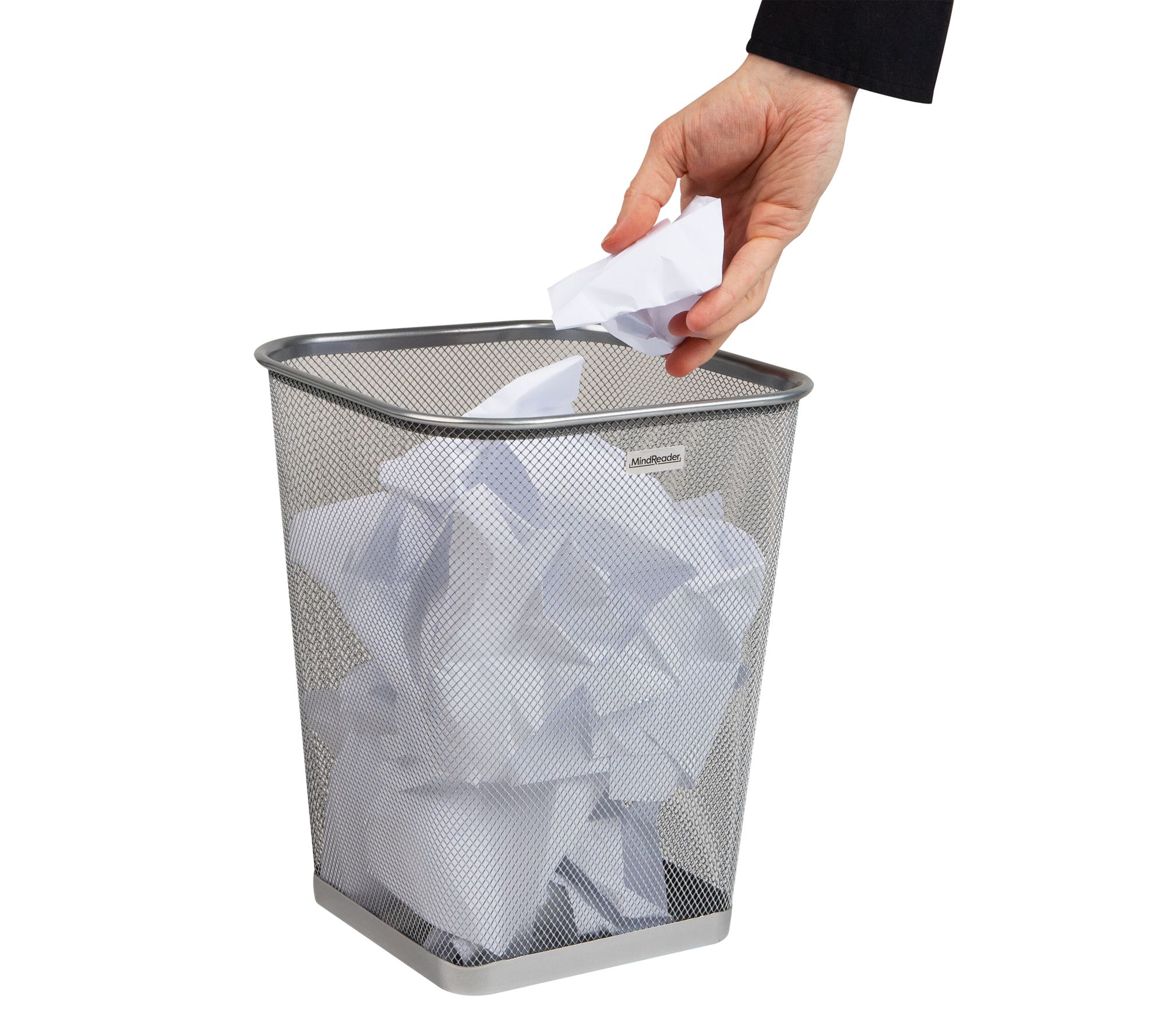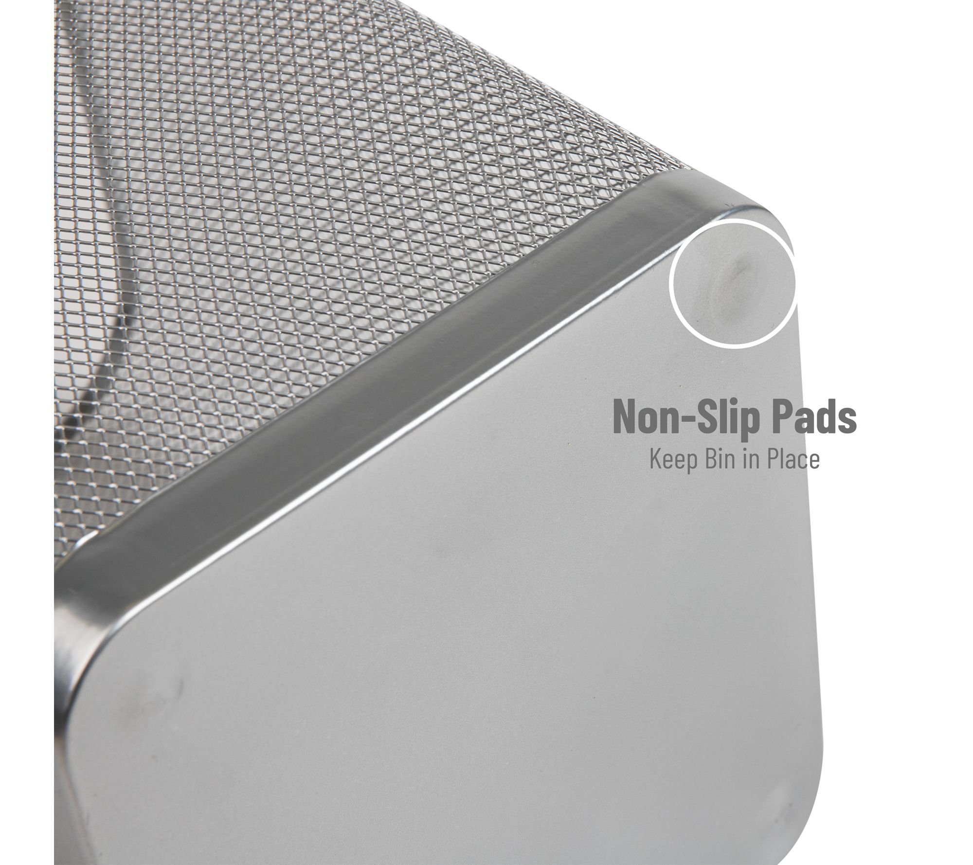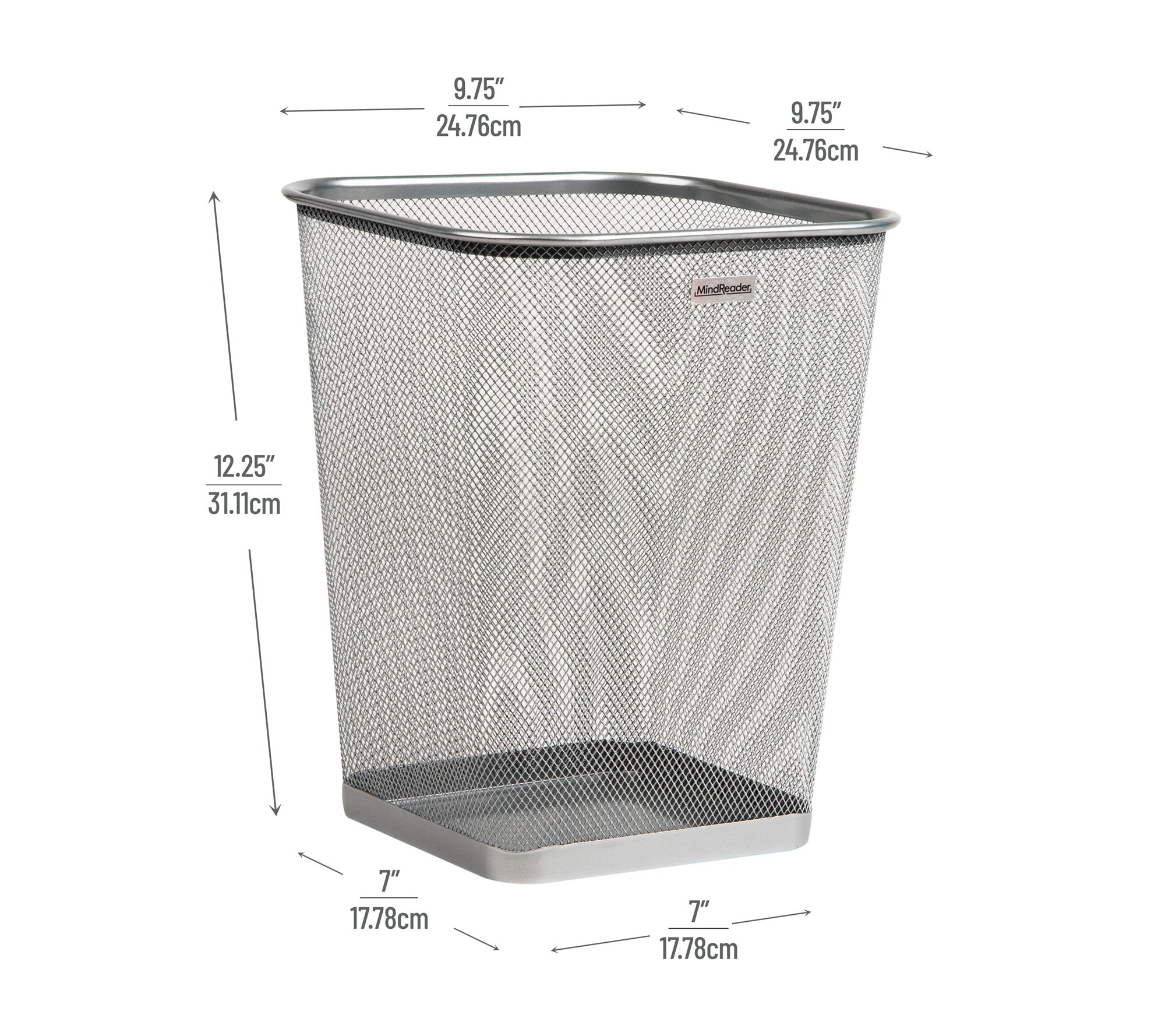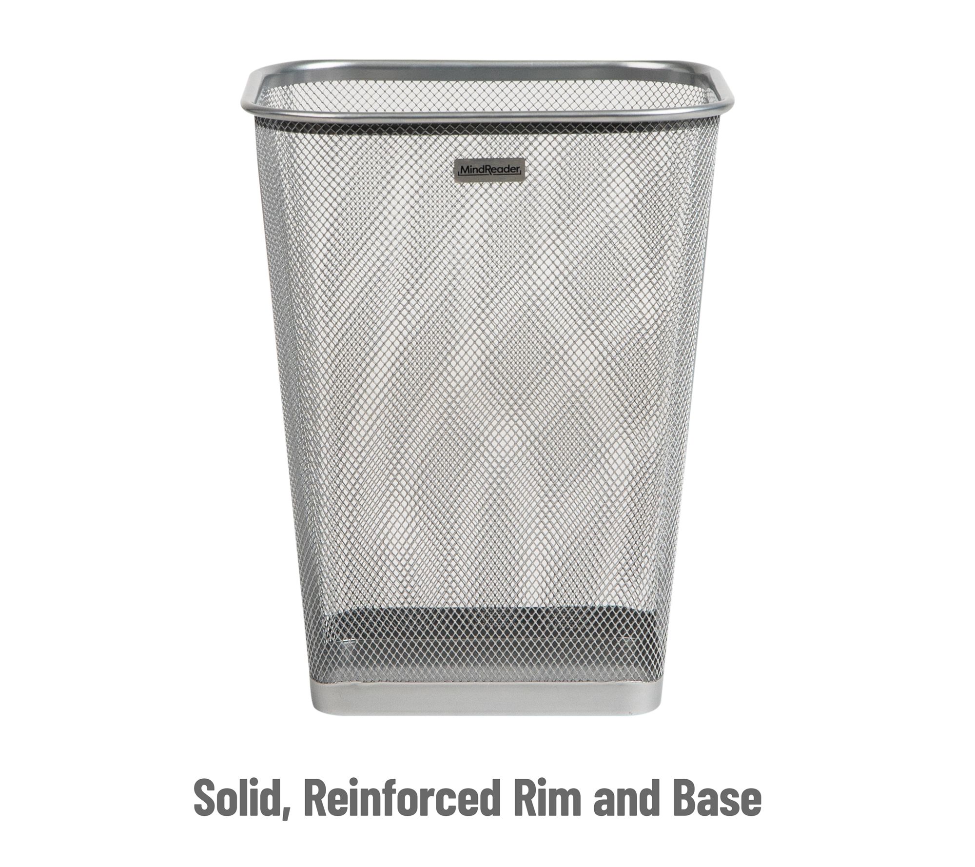 A streamlined solution for everyday clutter, this set of two mesh waste bins brings a modern touch to any space while helping keep odors in check. The breathable metal mesh design allows airflow, minimizing moisture, and the sturdy steel base and reinforced rims provide reliable support. Use them together to organize recycling and trash or place them in separate rooms for versatile convenience. From Mind Reader.