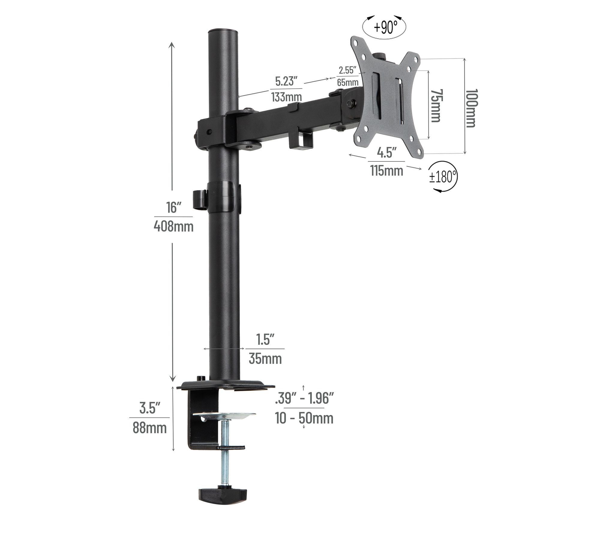 Mind Reader Single Monitor Desk Mount 90 Swivel