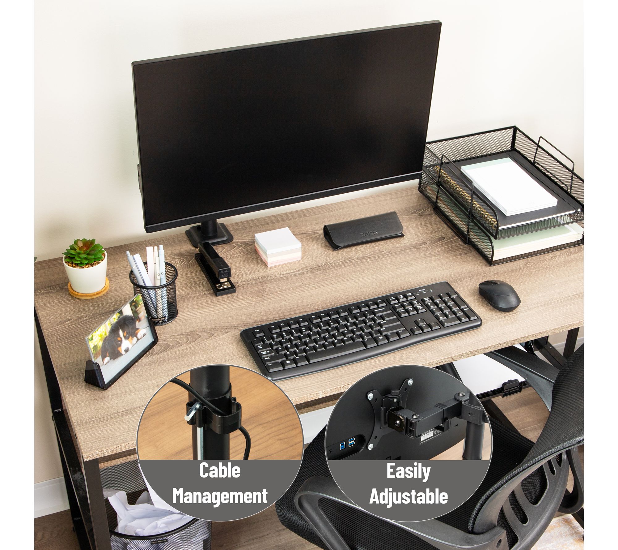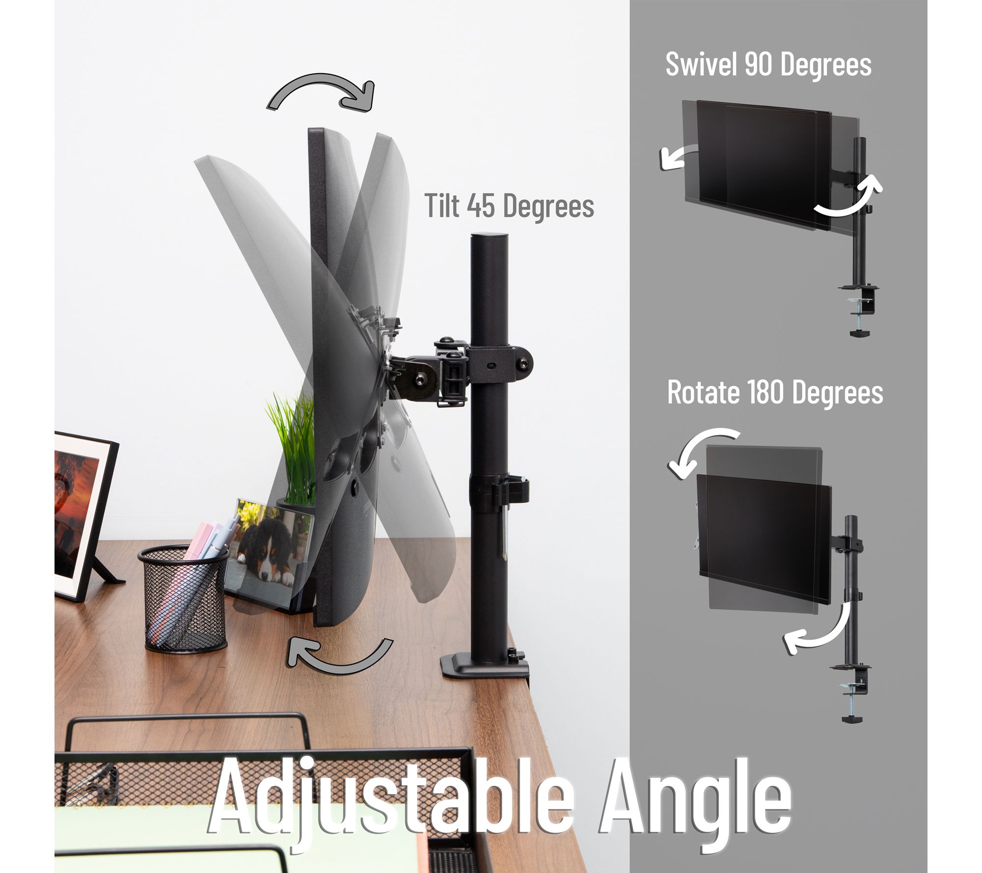 Create a workspace that adapts to your needs with this single monitor desk mount. Effortlessly tilt, swivel, and rotate your screen to find your favorite viewing angle, while built-in cable management keeps your desk neat and organized. From Mind Reader.