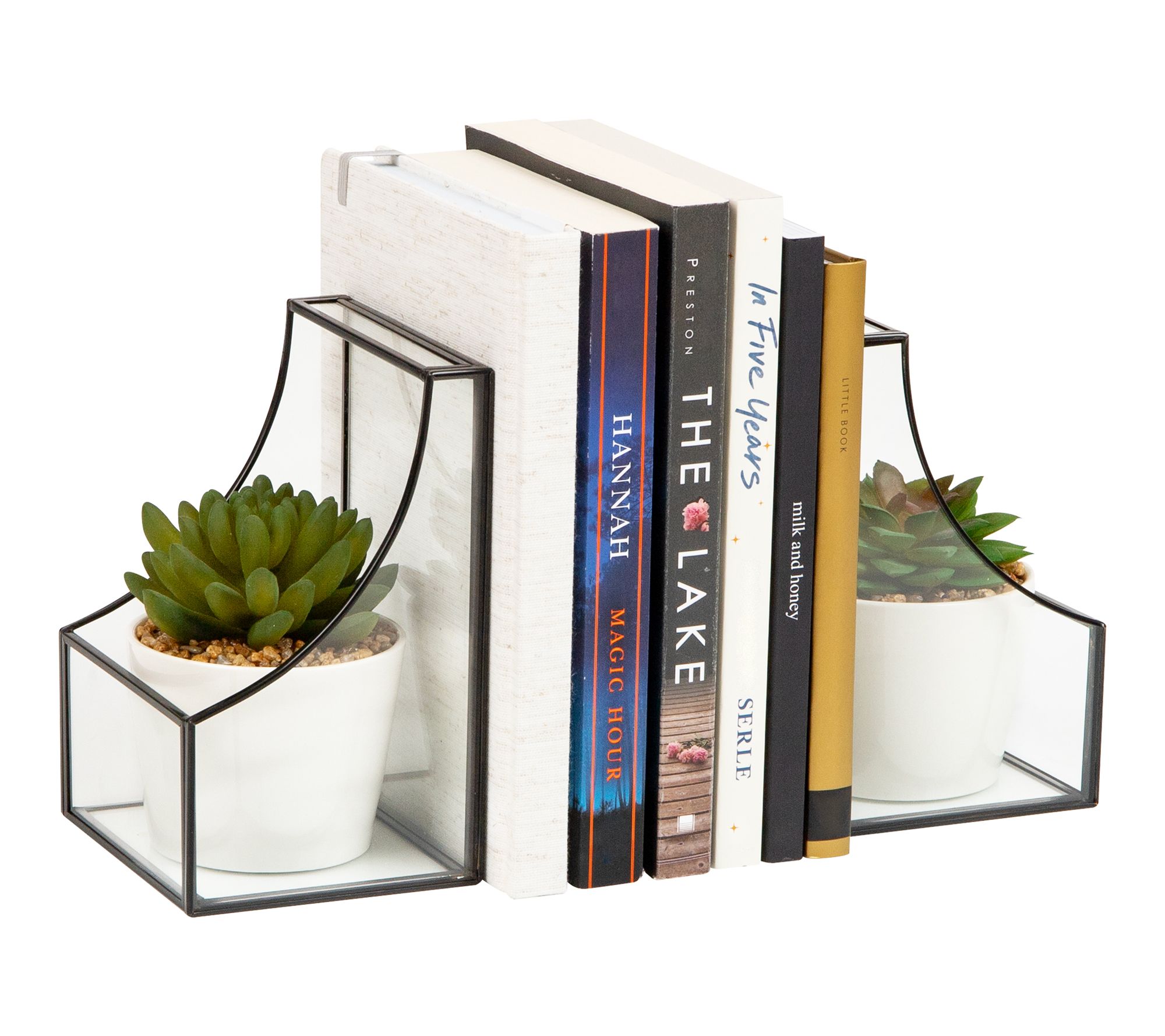 Mind Reader Terrarium Bookends, Decorative Book Holders