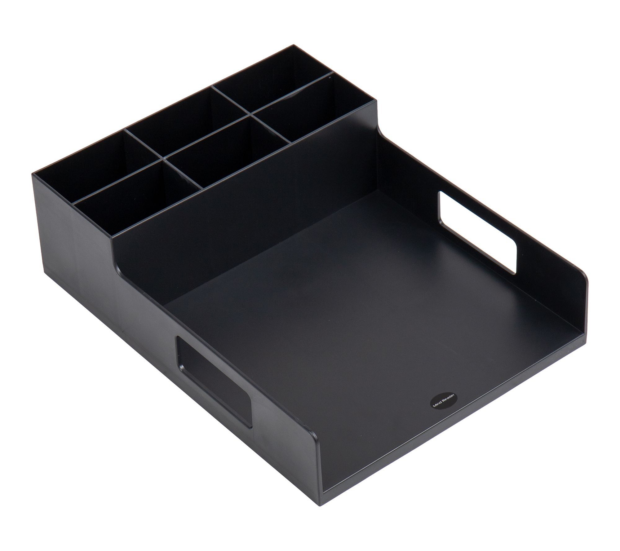 Effortlessly organize everything from utensils and napkins to plates and condiments with this versatile silverware organizer. Whether you're hosting a lively backyard barbecue or keeping your kitchen countertop tidy for busy family meals, its seven compartments make it easy to group items for quick access. Lightweight and portable, it's always ready to serve wherever you need. From Mind Reader.