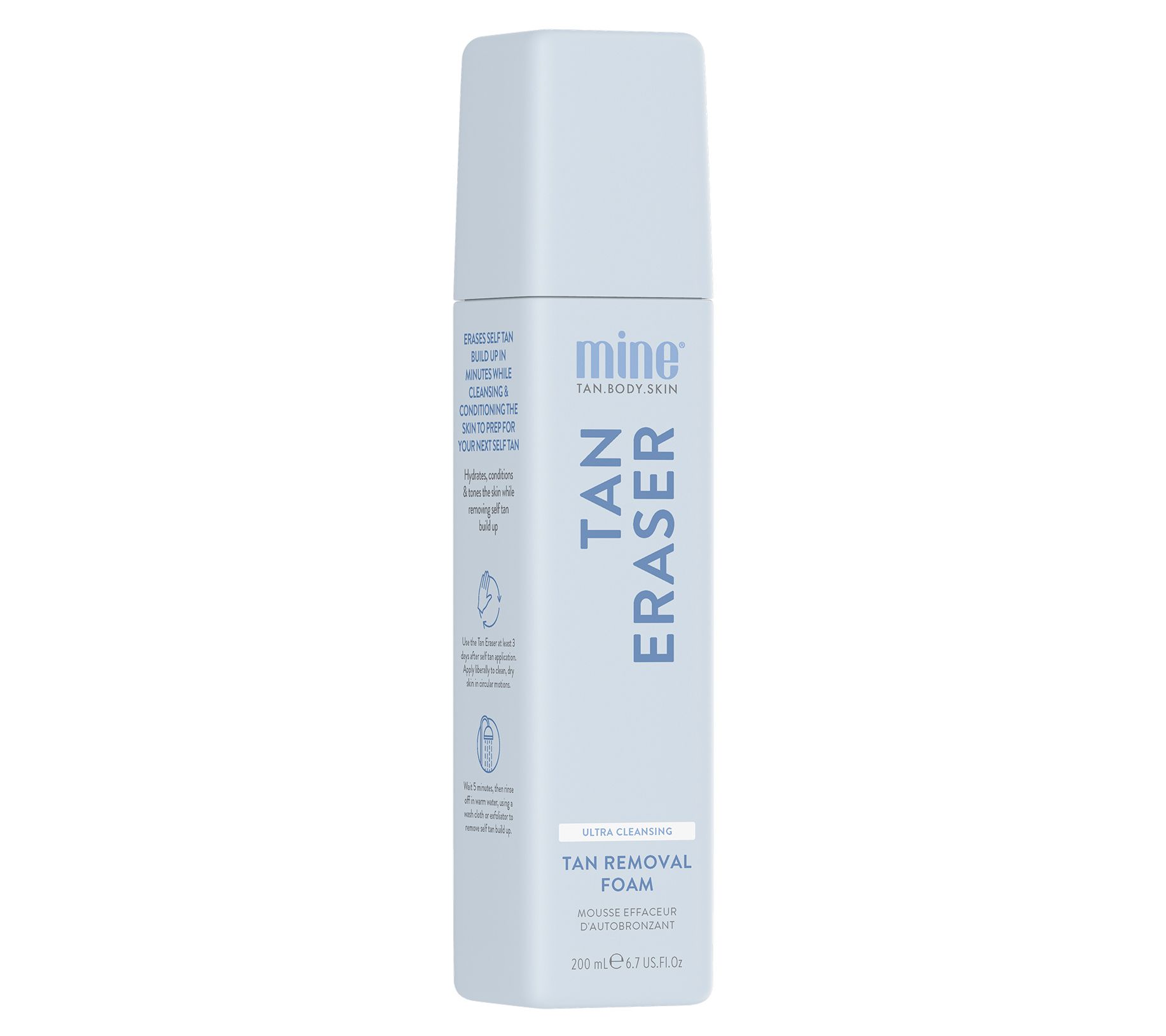 Remove self tan build up so you can start fresh with your next self tan with Mine Tan Tan Eraser Cleansing Foam. Prep and prime your skin for perfect looking self tan results with this 2-in-1 cleanser and prime that hydrates and conditions the skin. The foam latches onto dirt, oils, and your old self tan, removing them and leaving your skin looking hydrated and conditioned.