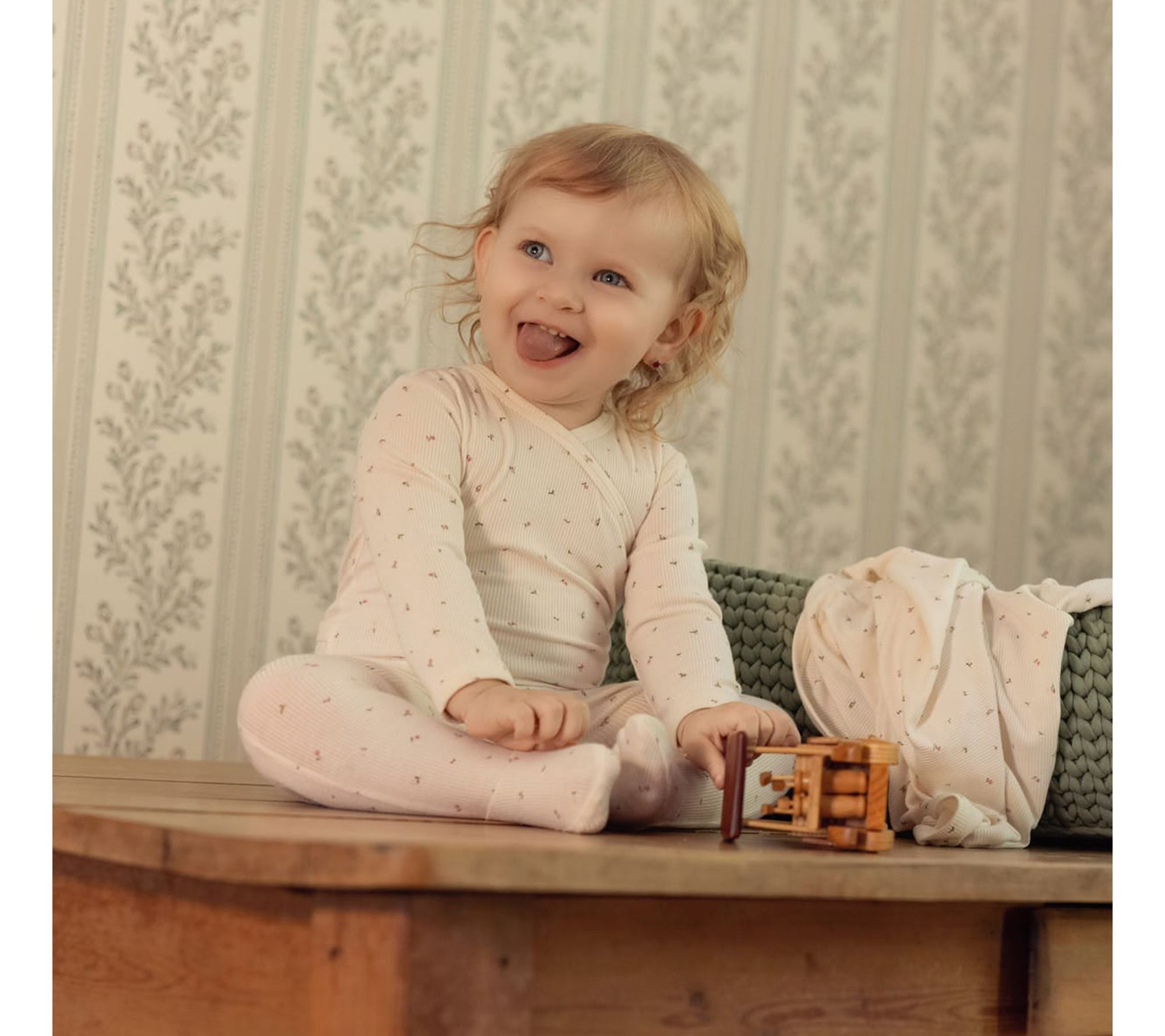 Welcome your little one to a world of comfort and springtime style with this adorable footie. Crafted from soft mini-rib fabric and adorned with charming sprig prints, this jumpsuit keeps your baby cozy for playtime, naps, and picture-perfect moments. From Mini Moi.