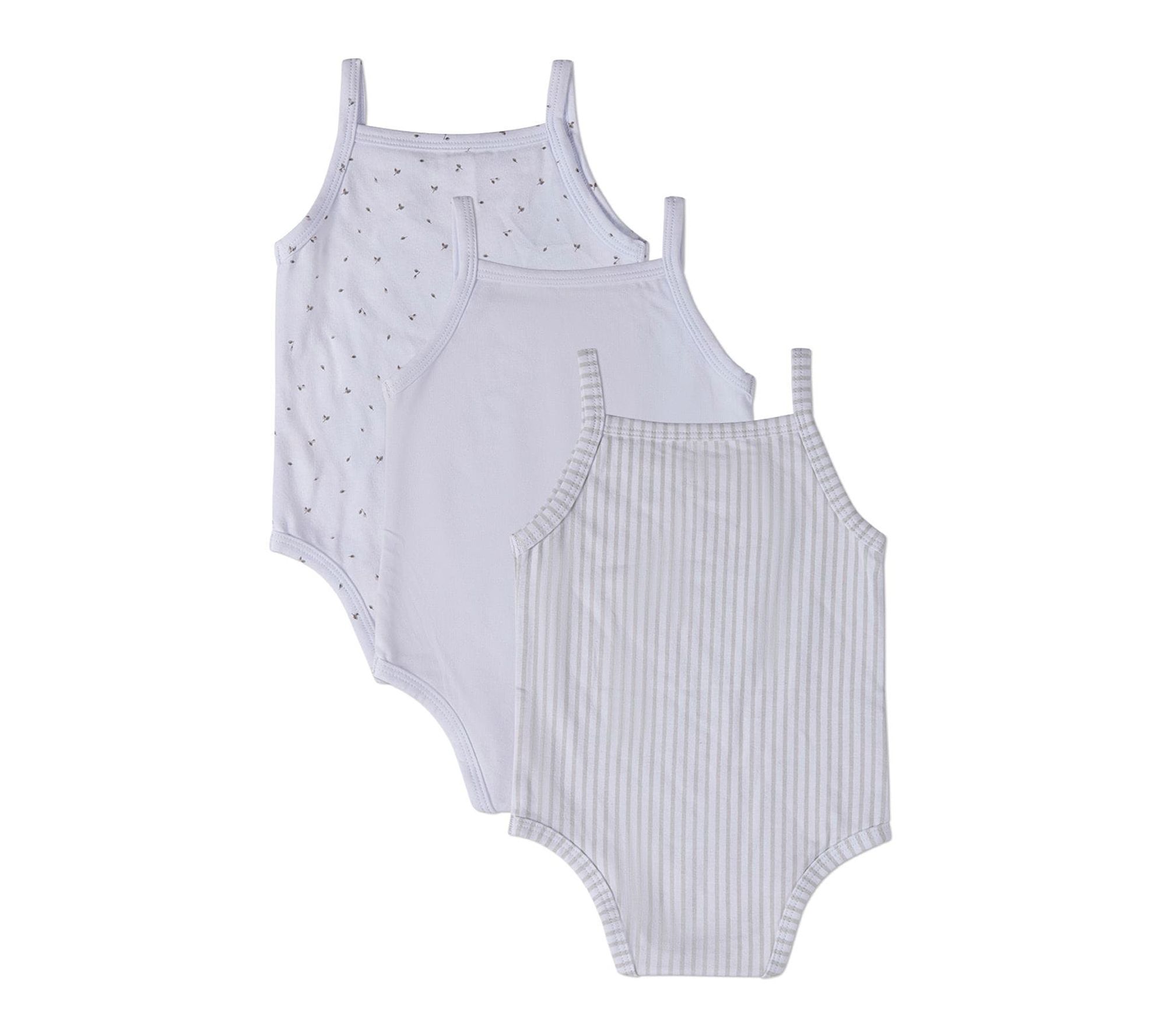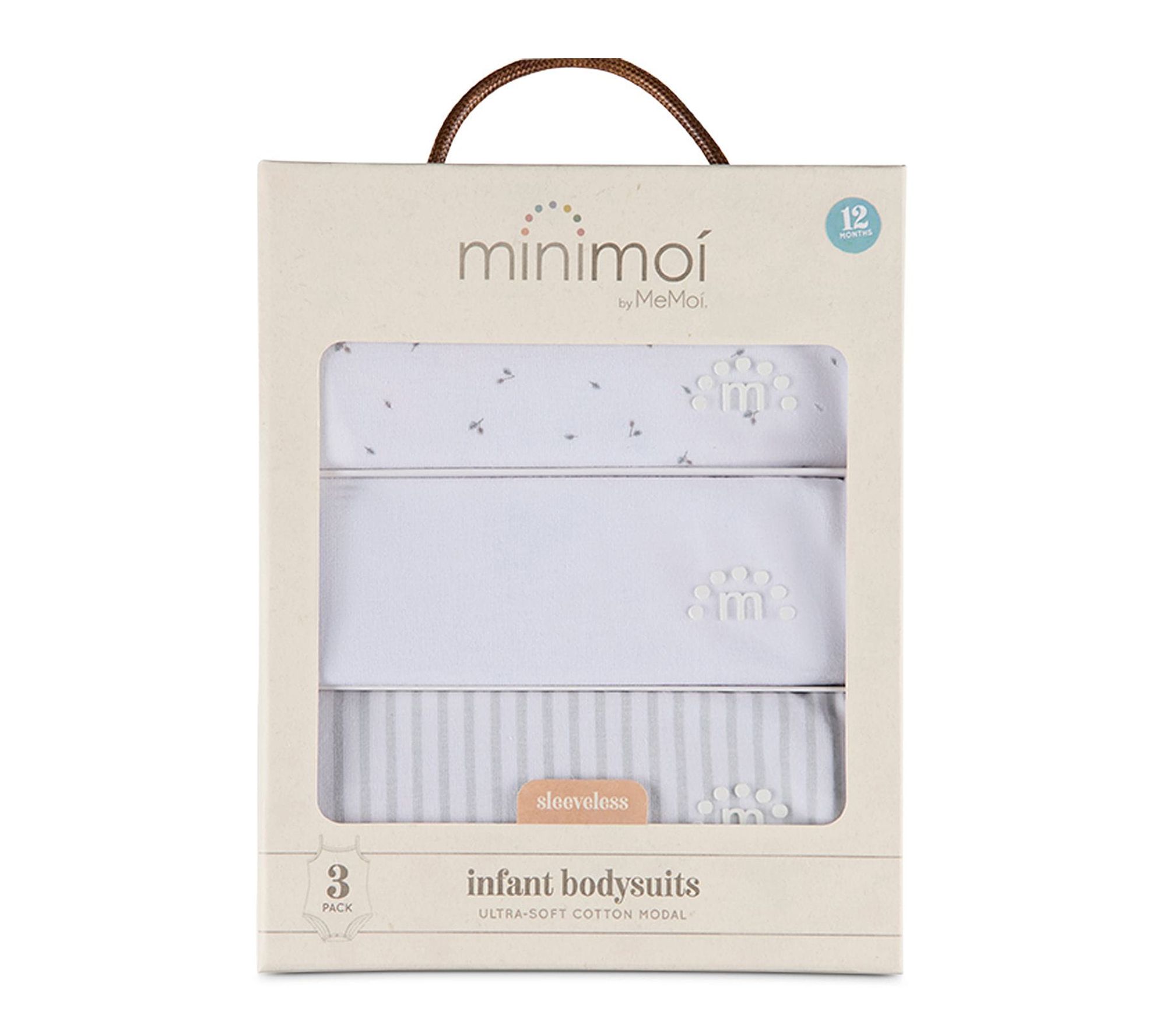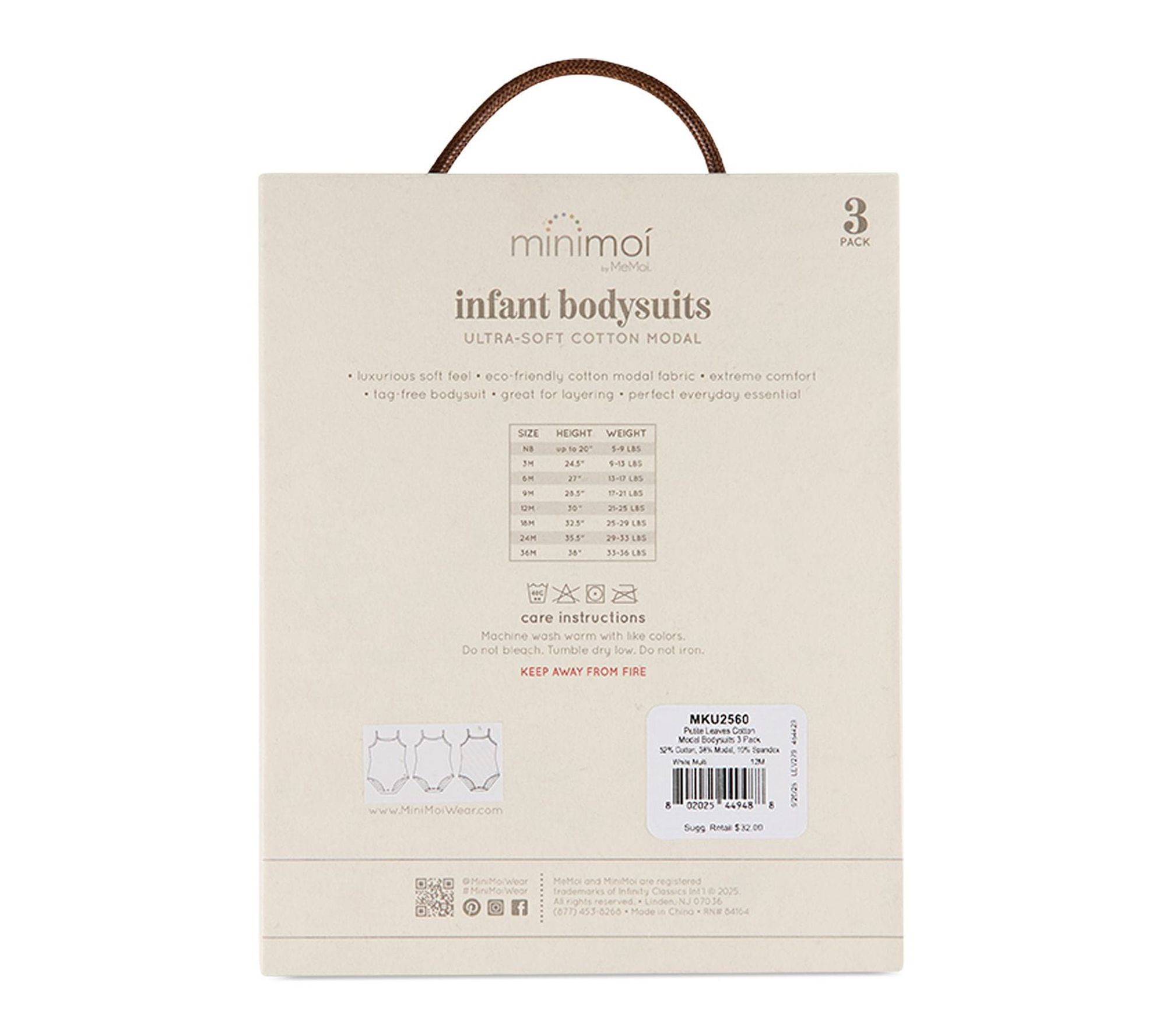 MiniMoi 3 Pack Baby Bodysuits - Petite Leaves,Stripes, Solid