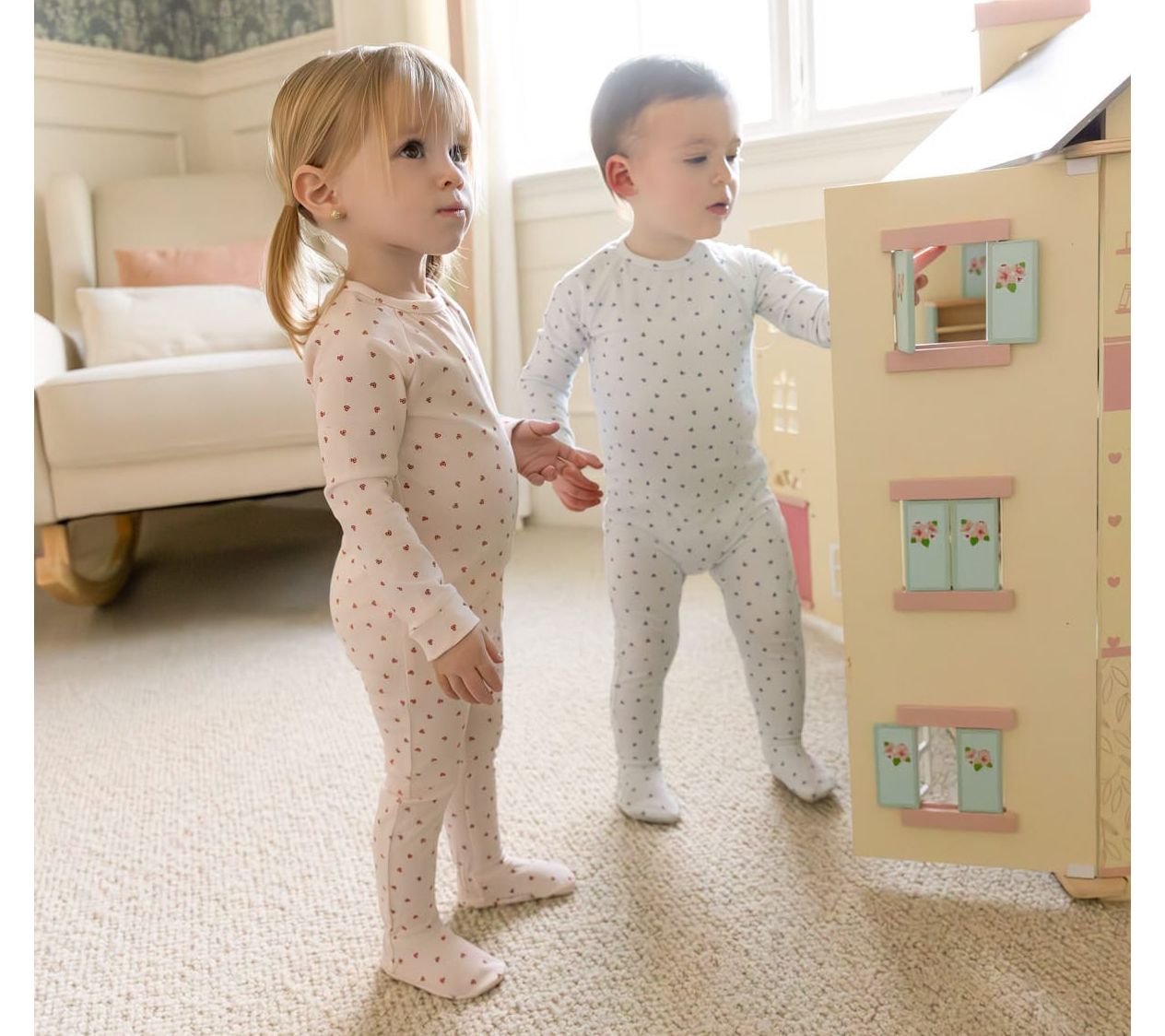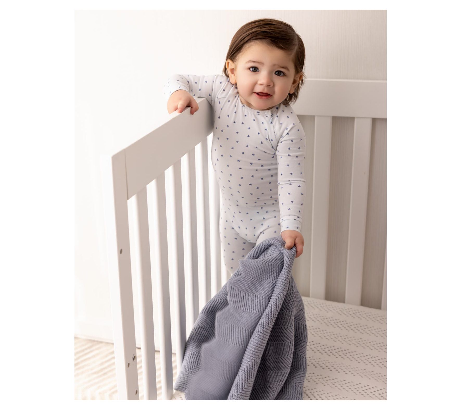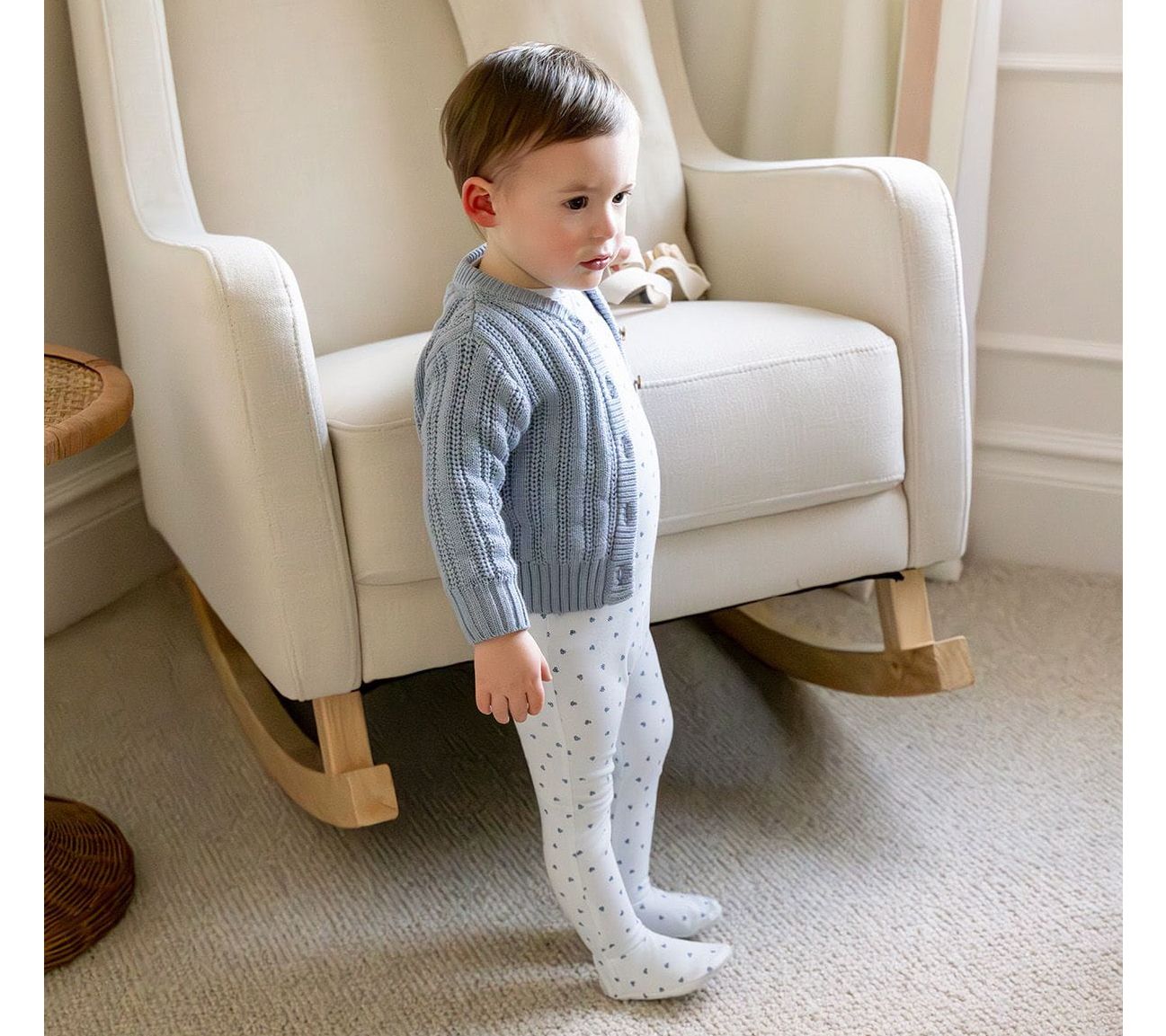 Morning snuggles and playtime just got cuter with this soft knit jumpsuit for babies, decorated in a clover-inspired heart print. The hidden zipper, single-snap collar, and raglan long sleeves mean quick changes and gentle comfort, taking your little one from nap to tummy time with ease. From MiniMoi.