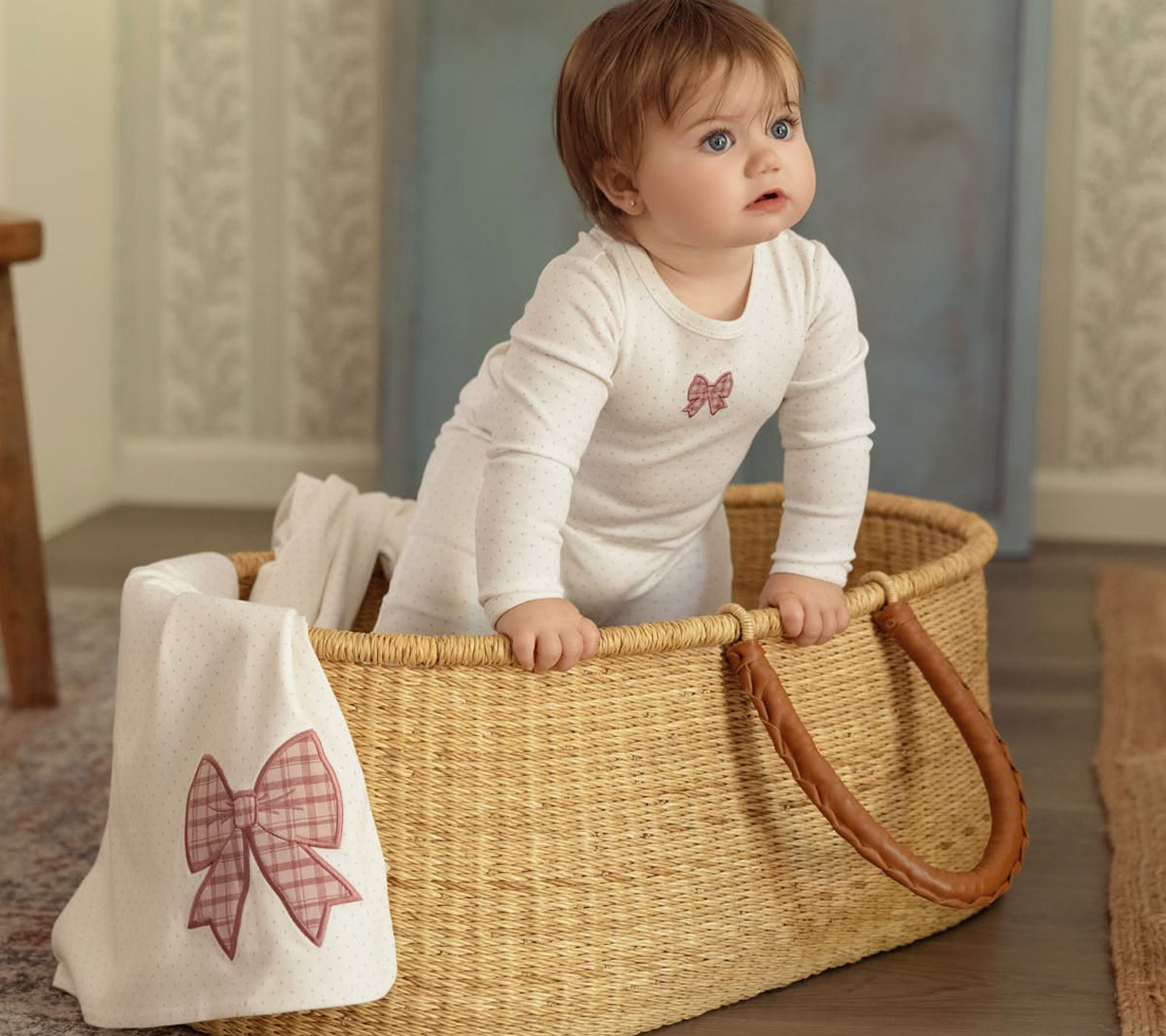 MiniMoi Baby Girls Put A Bow On It EmbroideredSwaddle Blanket