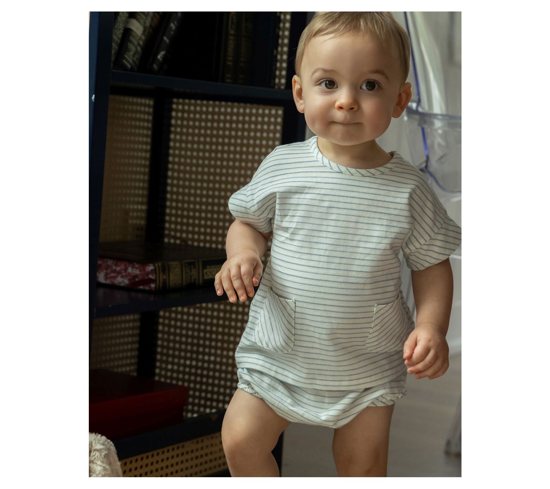 Get your baby ready for the season with this adorable striped short-sleeve top and bloomers set. With front-facing pockets and back snap closures, it’s designed for easy dressing and all-day comfort. From MiniMoi.