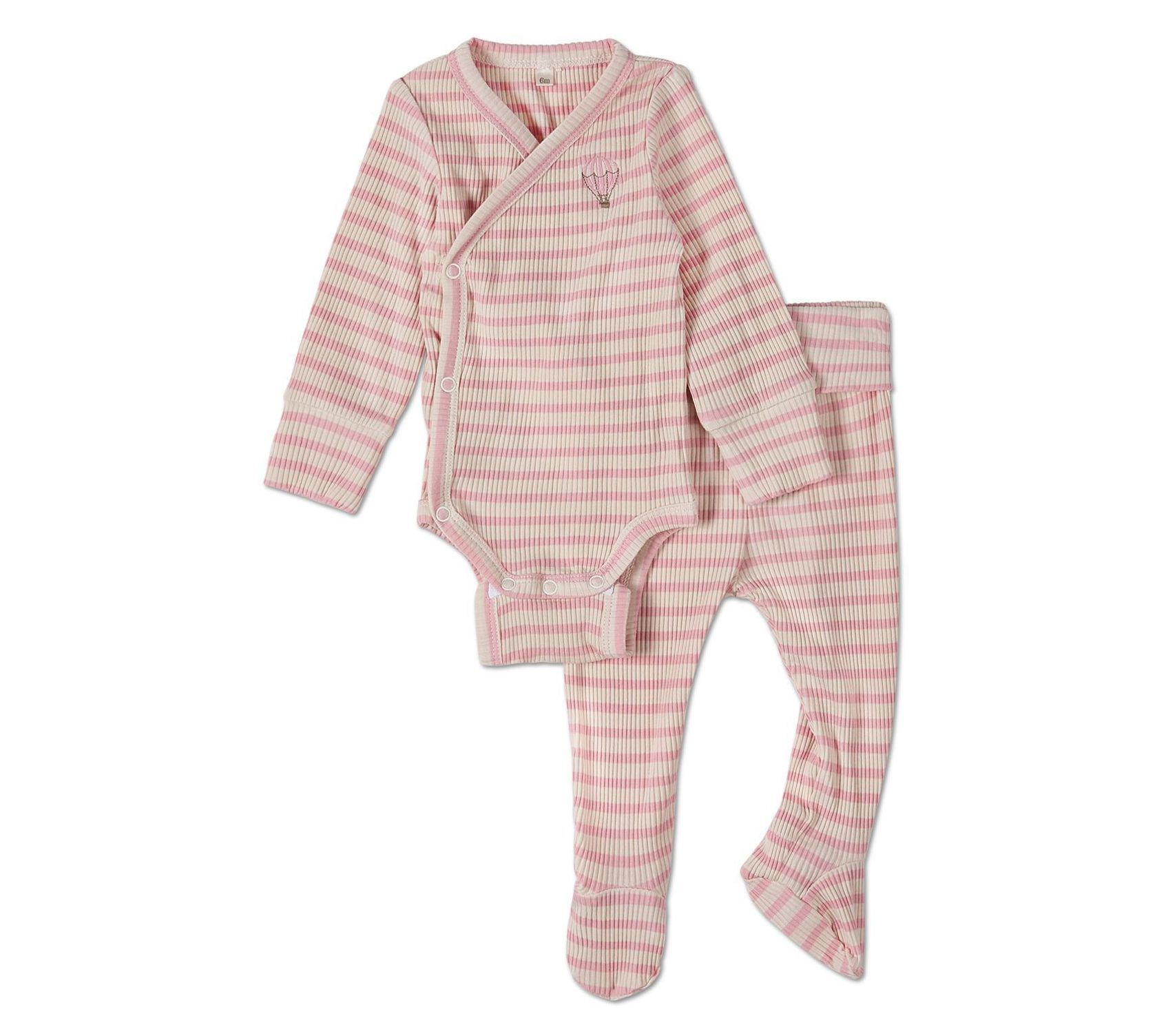 Planning a day out or a cozy afternoon at home? This MiniMoi hot air balloon bodysuit set has your little one covered. The long-sleeve bodysuit and footed pants combo helps provide comfort and warmth in cooler weather, while the V-neck bodysuit alone keeps things lightweight when it heats up. From MiniMoi.