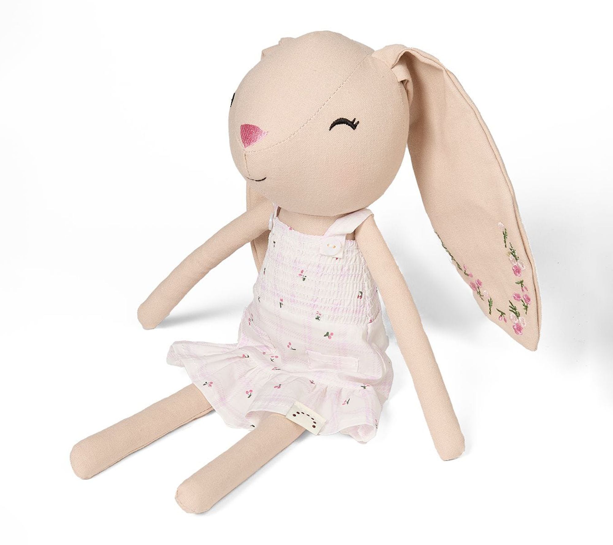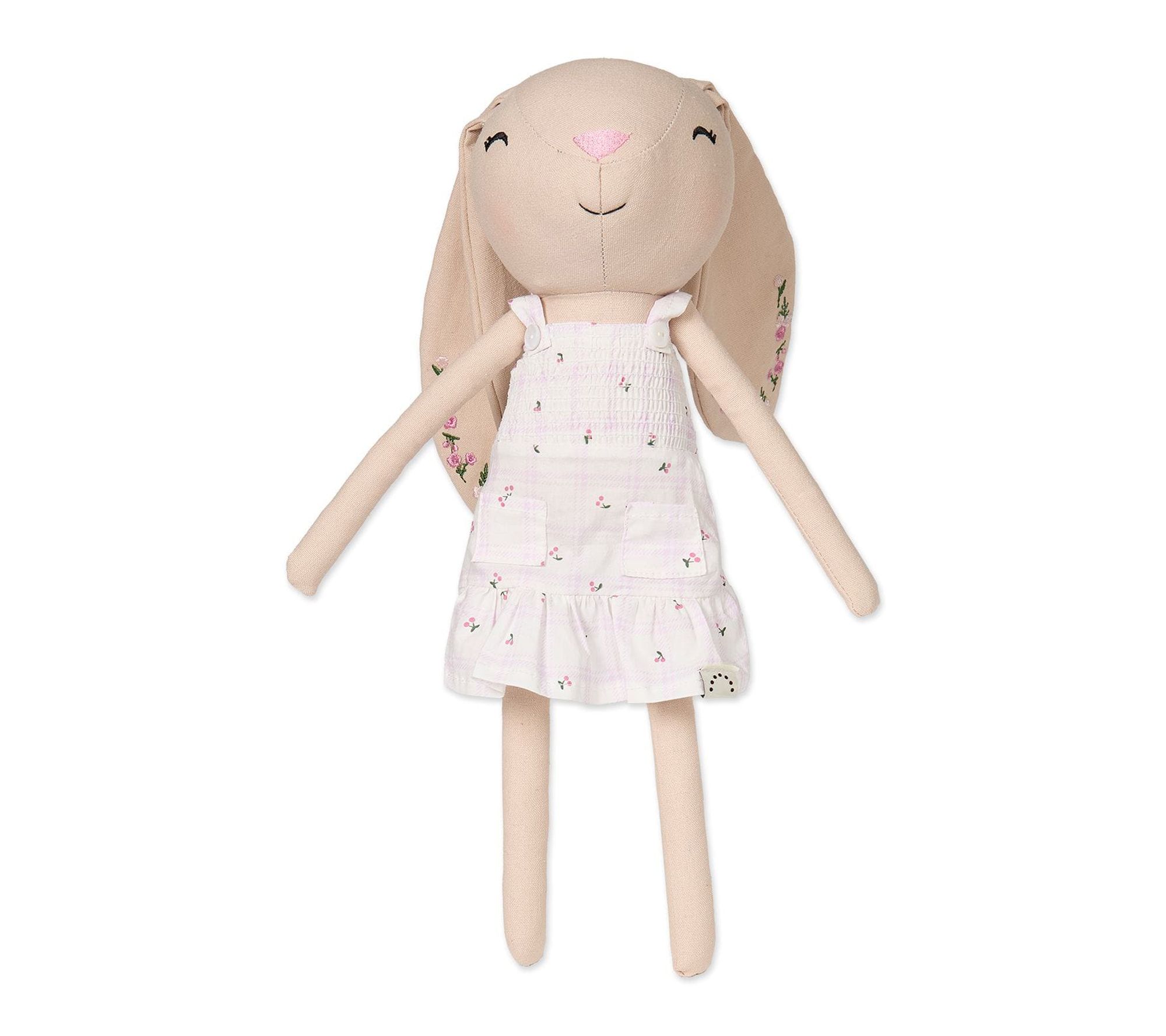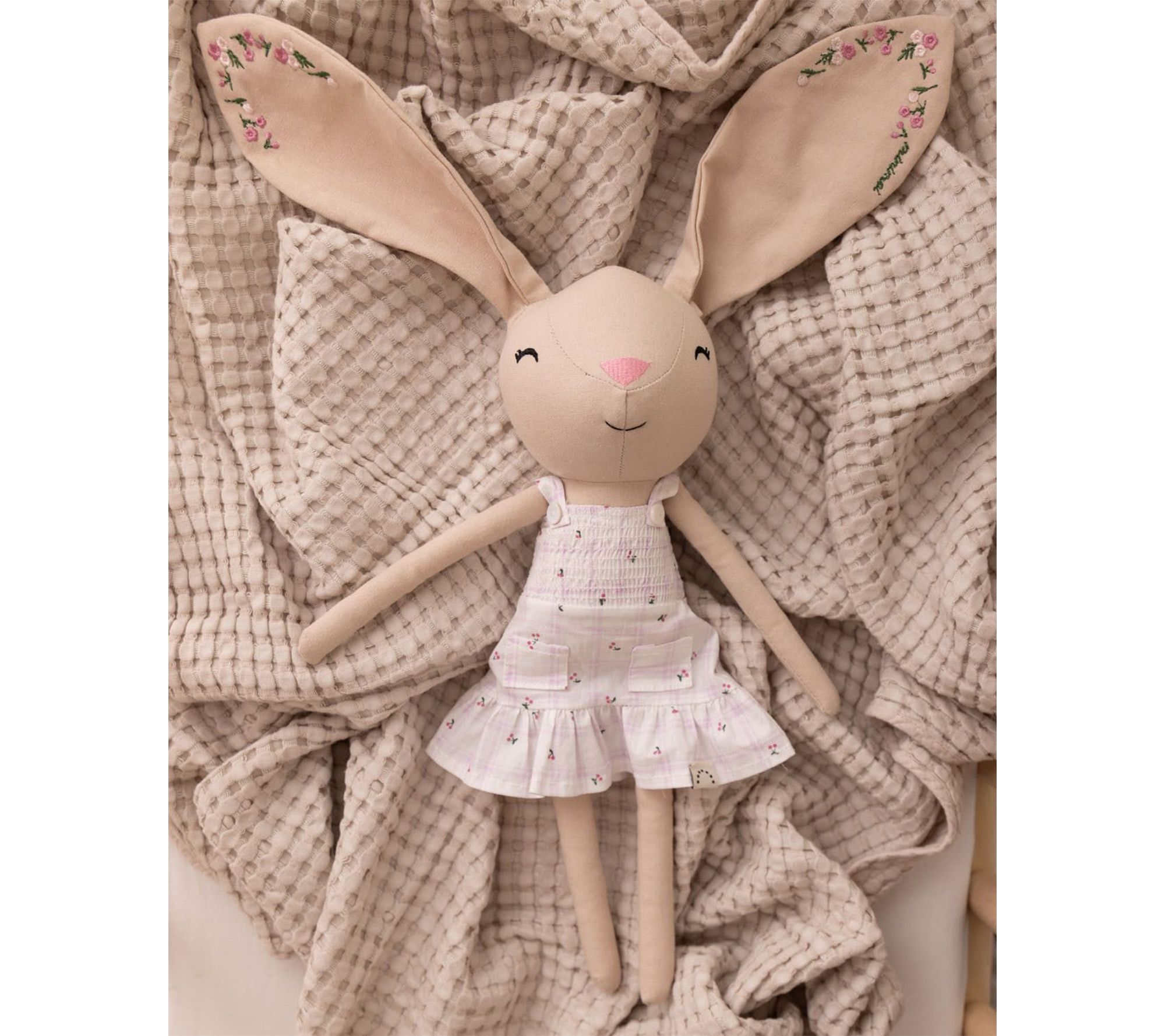 Bella Bunny doll brings cozy charm to a child's world with her cotton-linen body that's made for snuggling and gentle play. From comforting naptime cuddles to whimsical dress-up sessions, this plush companion is a delightful part of any daily routine. Her pretty cotton dress and floppy ears make every moment feel extra special. From MiniMoi.