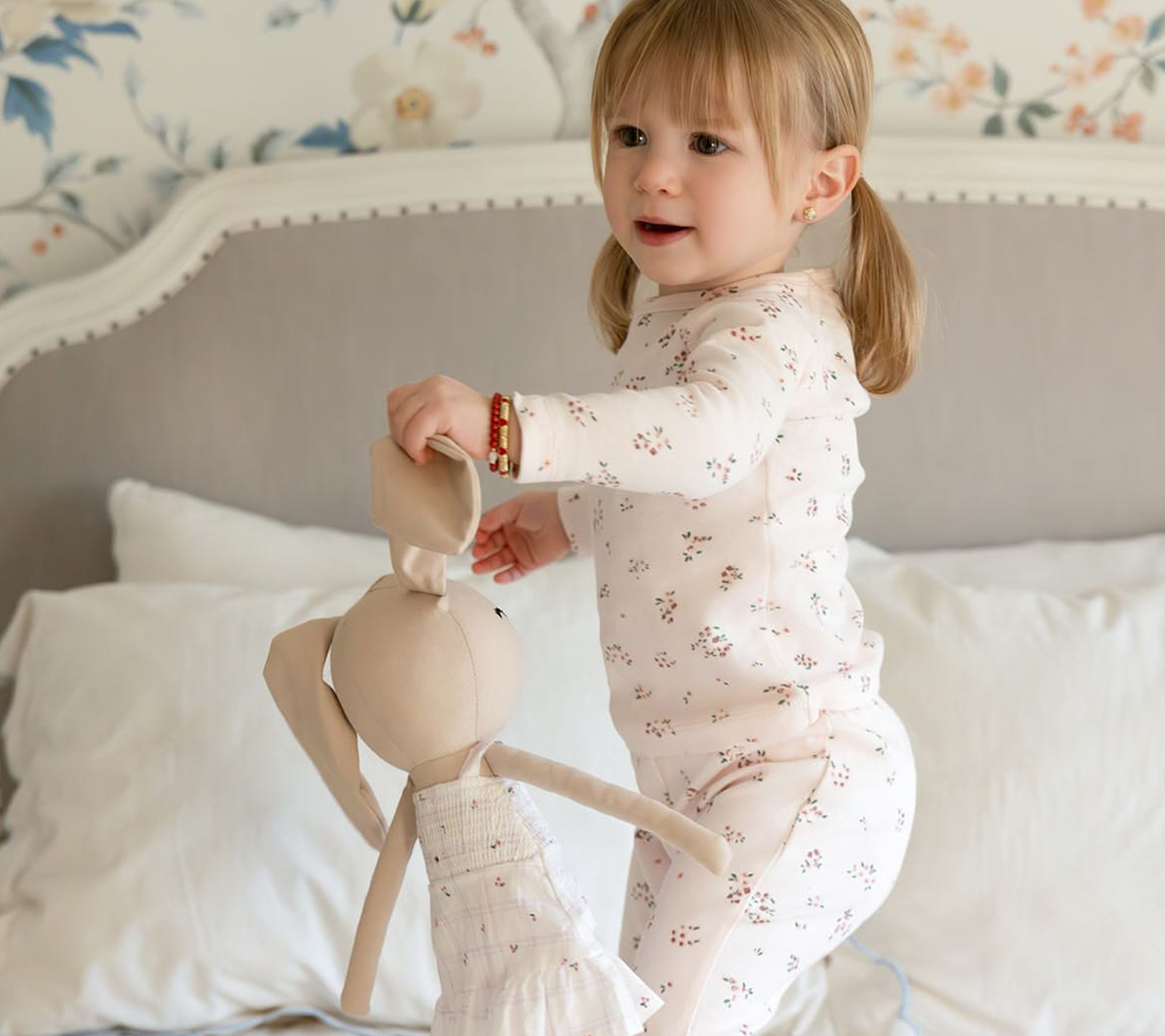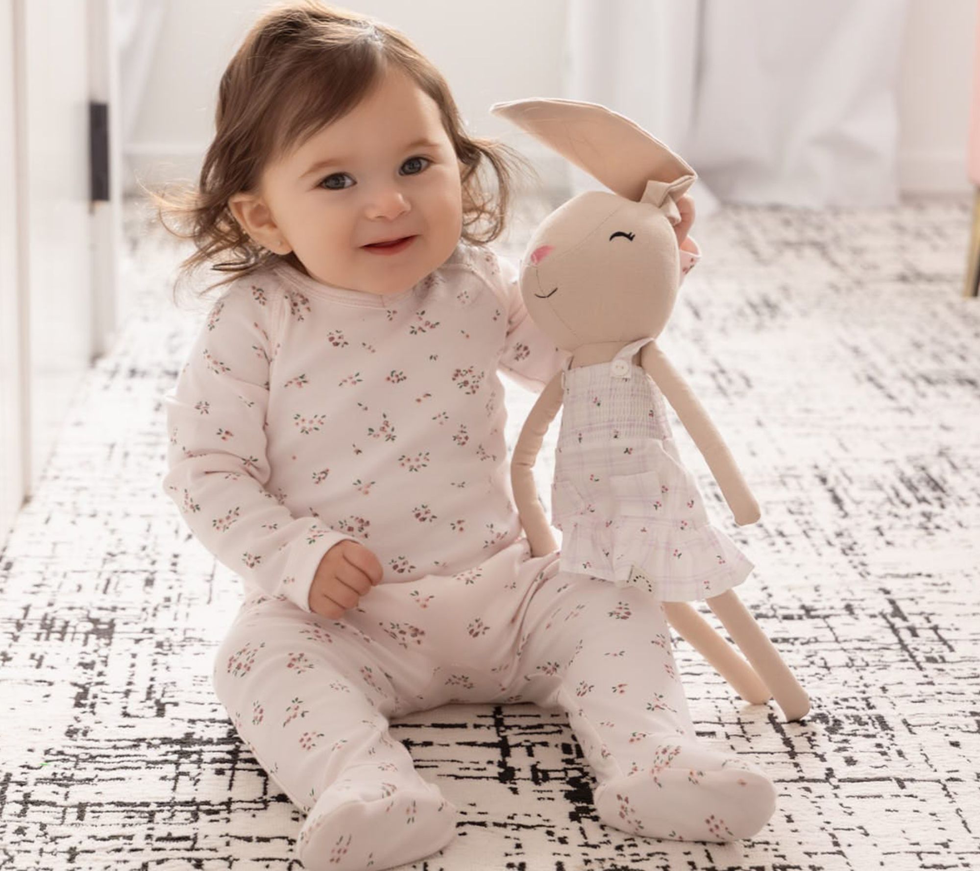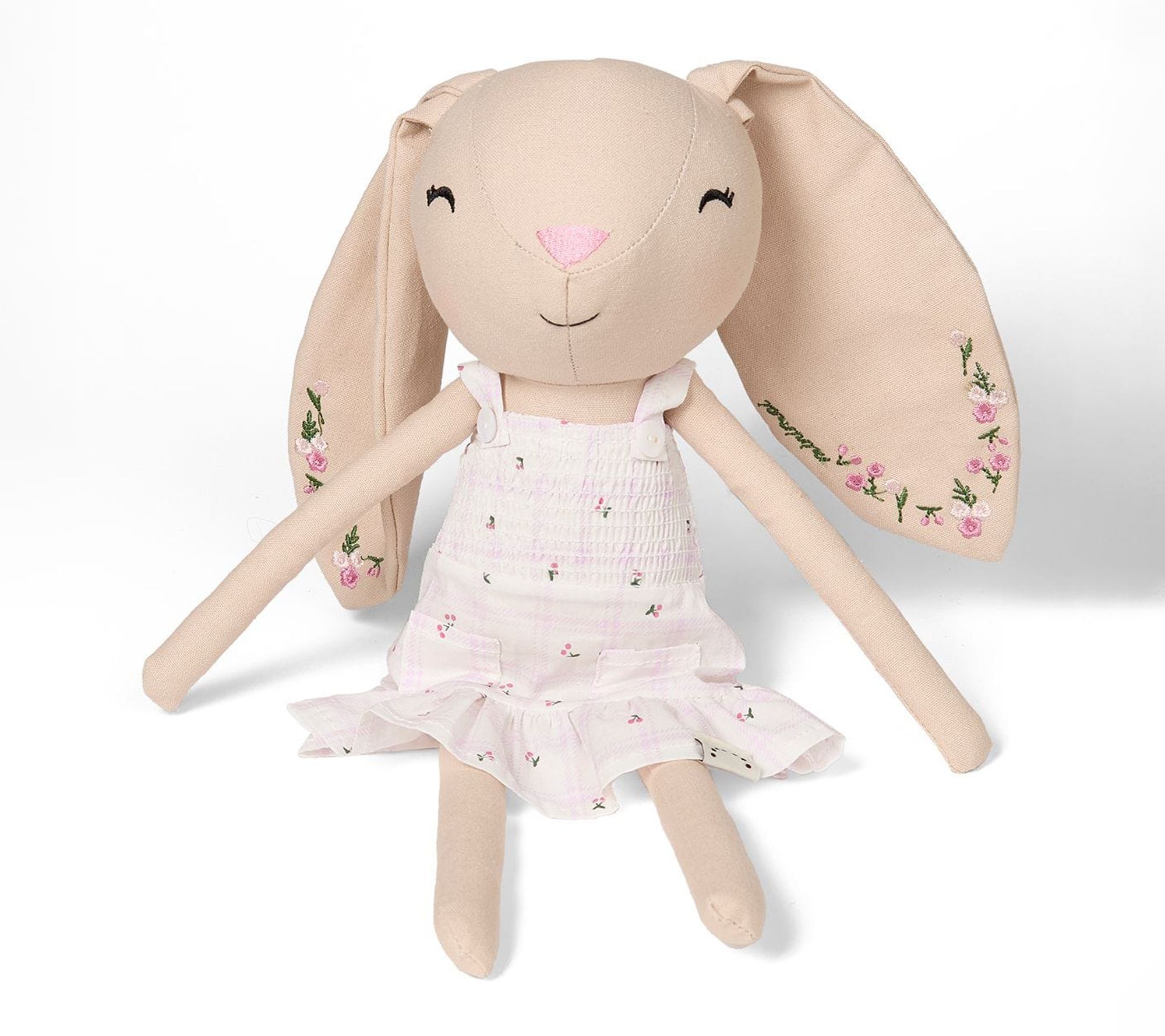 Bella Bunny doll brings cozy charm to a child's world with her cotton-linen body that's made for snuggling and gentle play. From comforting naptime cuddles to whimsical dress-up sessions, this plush companion is a delightful part of any daily routine. Her pretty cotton dress and floppy ears make every moment feel extra special. From MiniMoi.