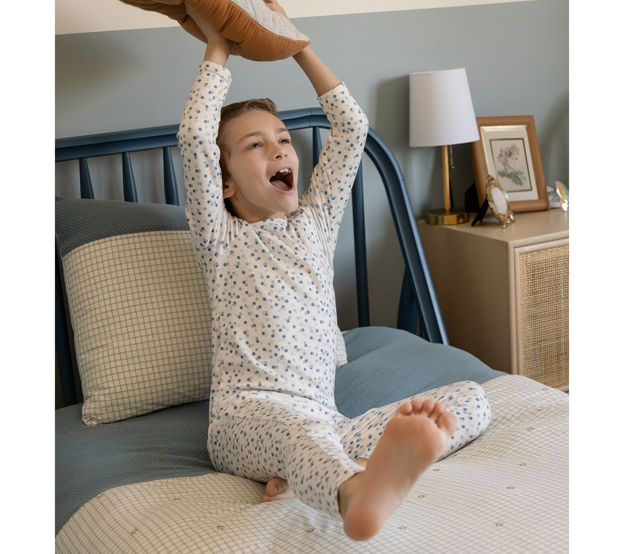 MiniMoi Boys Blue Confetti Pointelle Pull-On Pajama Set