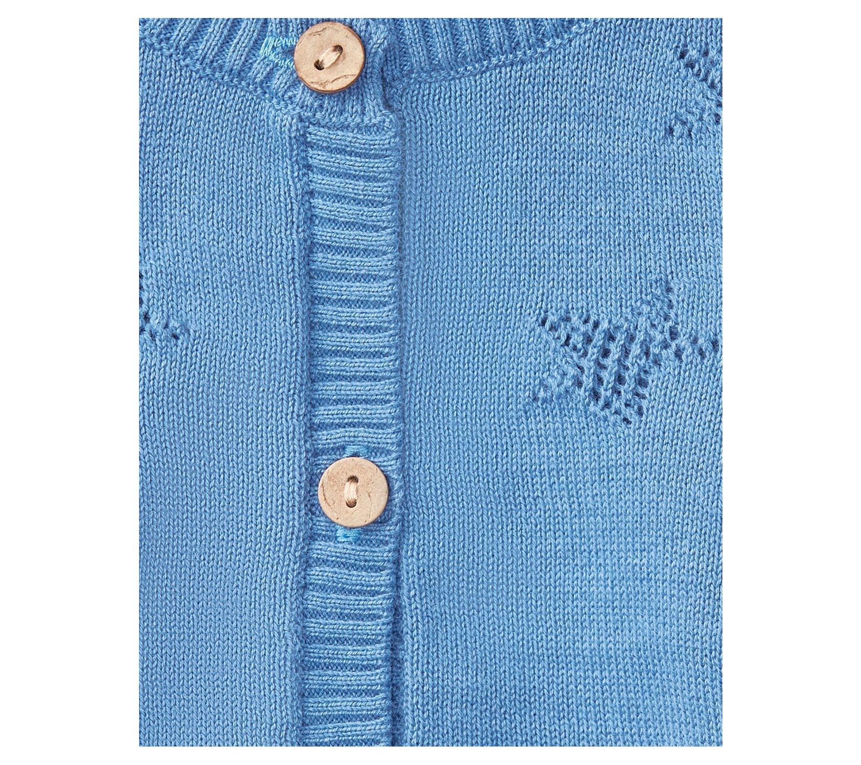 • Features: button-front closure, long sleeves, ribbed detailing, openwork knitting