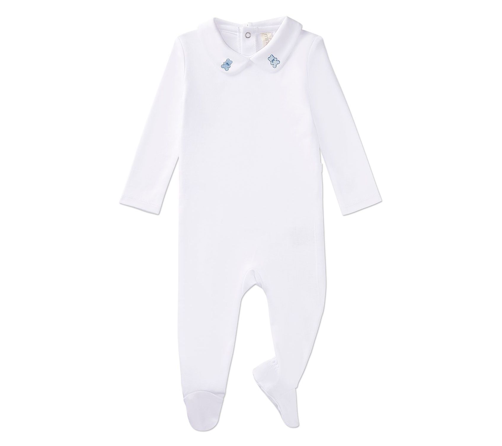 Pamper your little one's tender skin with this blissfully comfy footie. Details like the embroidered Peter Pan collar and convenient back-snap closure add a touch of quality and ease to this everyday essential. From MiniMoi.