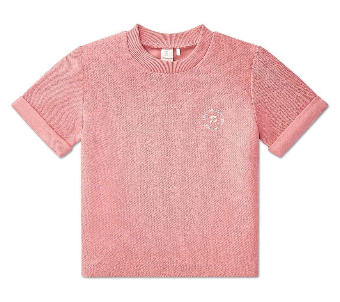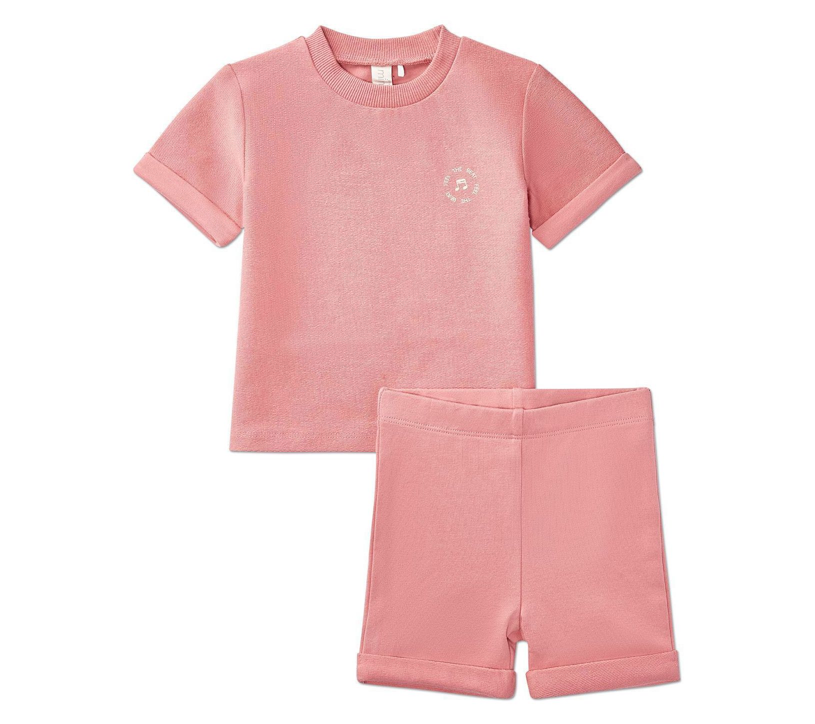 Is your little one always a bundle of energy? This MiniMoi girls' Feel the Beat set is just what she needs for all her playful moments! The set includes a stylish T-shirt with cuffed sleeves and a comfy pair of matching shorts. From MiniMoi.