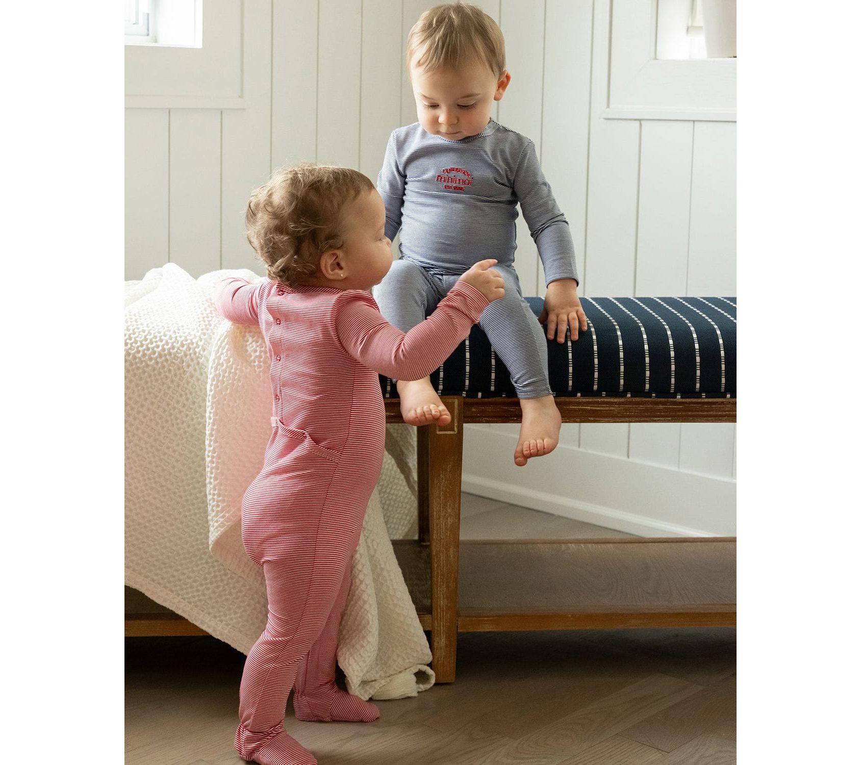 Whether it's a slumber party or a cozy night at home, this MiniMoi girls' mini-stripe pajama set sets the stage for fun and comfort. With its adorable stripes and soft fabric, your little one will drift off to dreamland in no time. From MiniMoi.