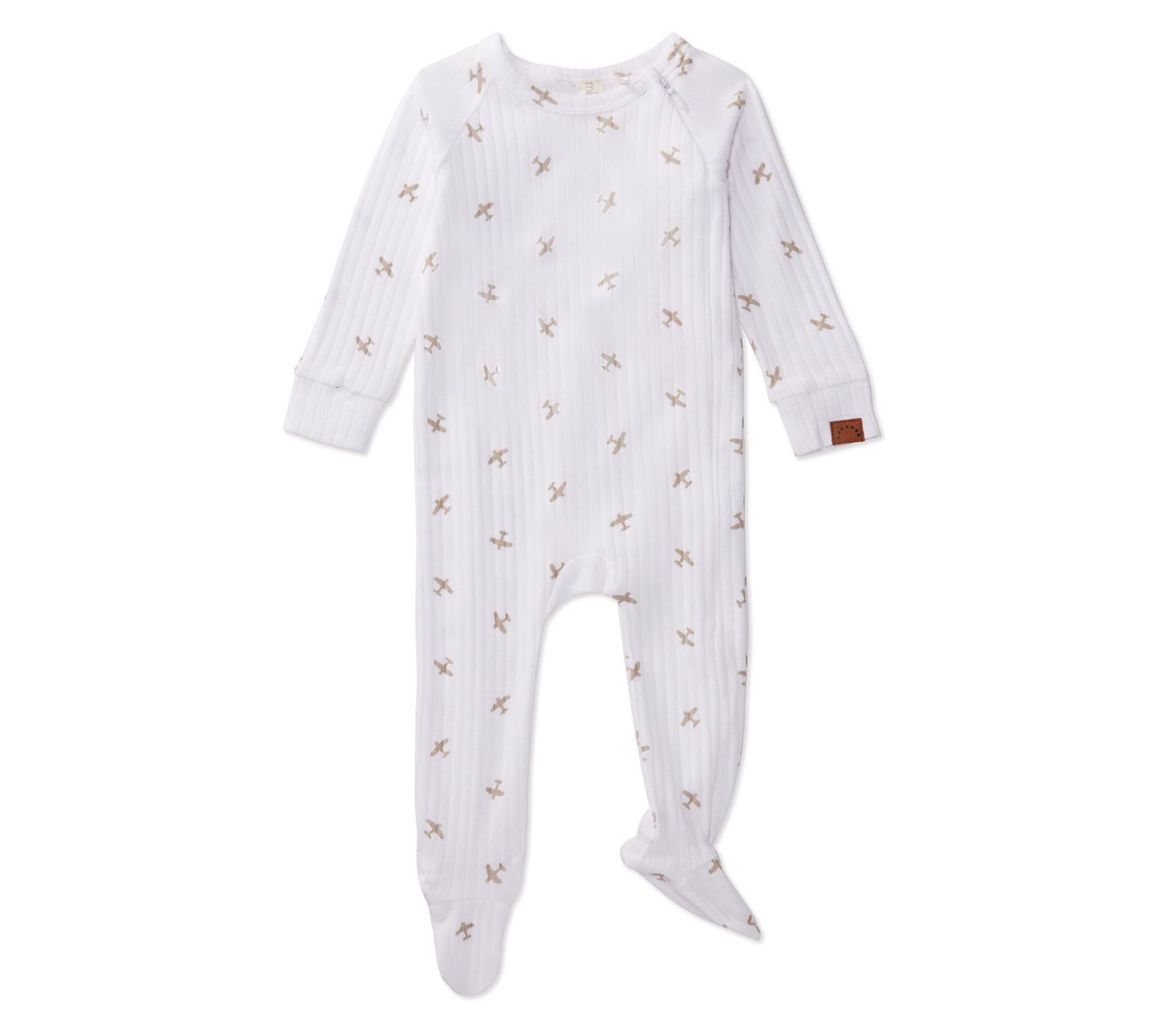 Take your little one's wardrobe to new heights with this adorable ribbed airplane footie set. Designed for convenience and comfort, this no-fuss style features long sleeves, footed legs, and an innovative hidden zipper that makes dressing a breeze. From MiniMoi.