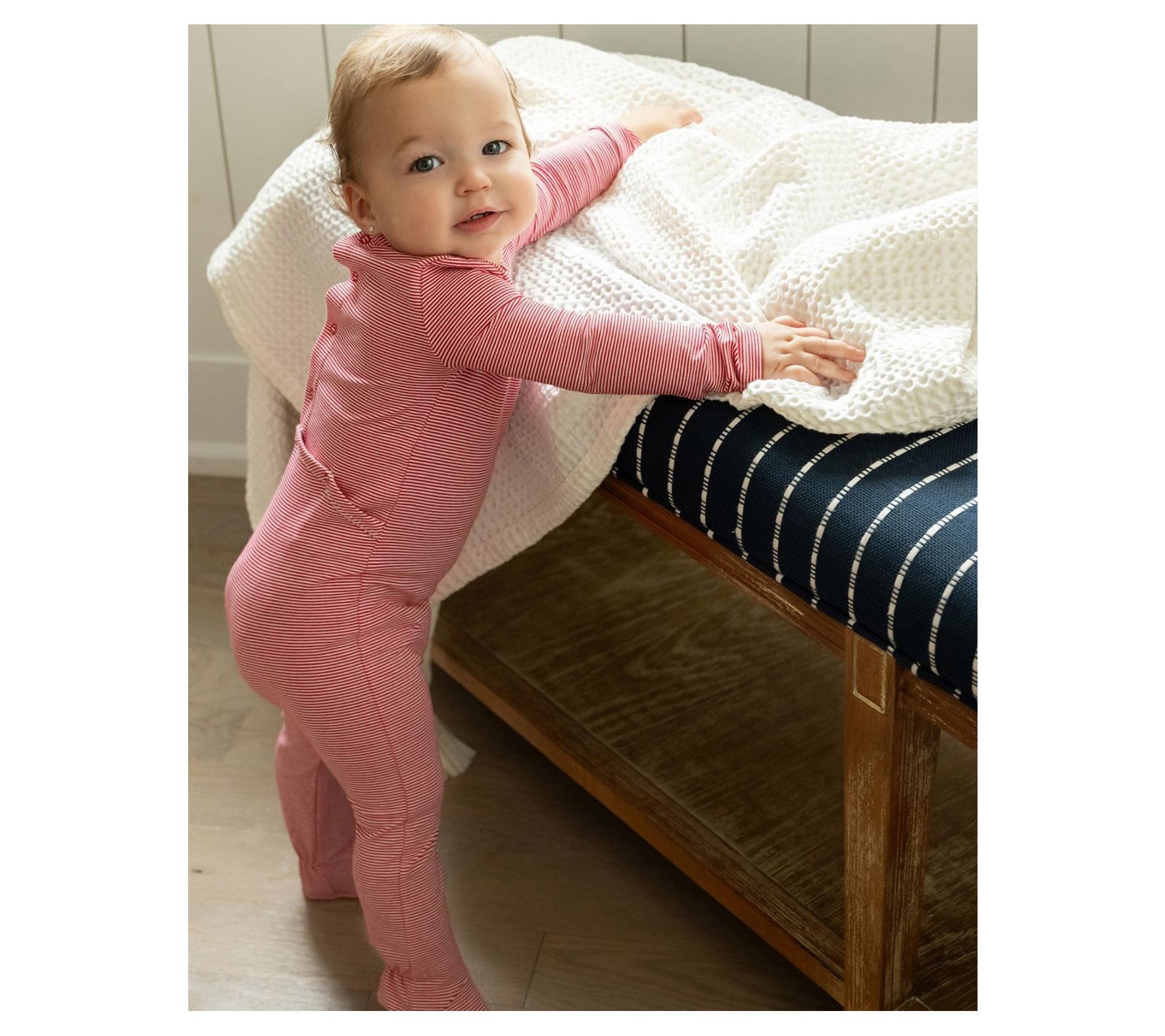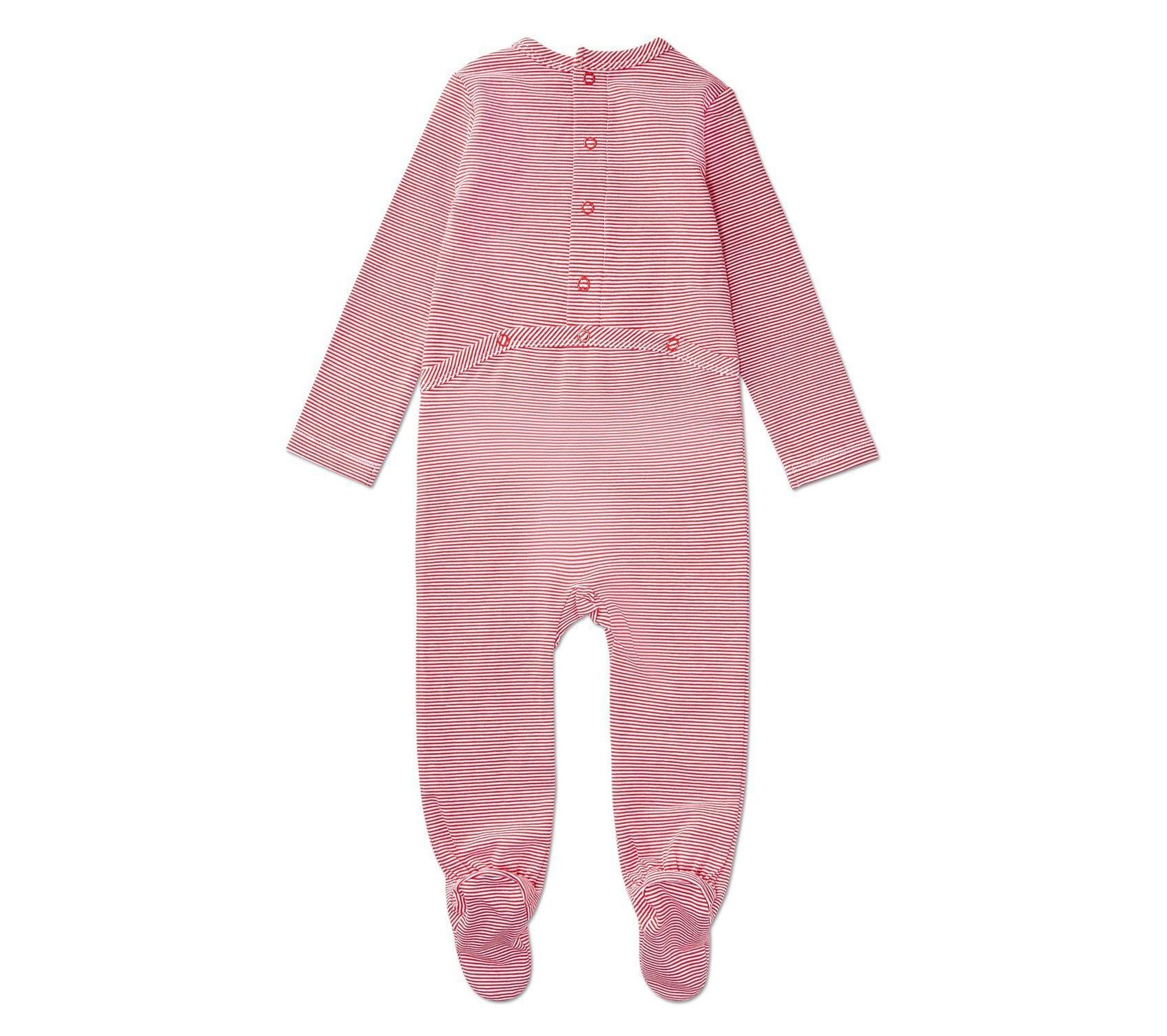 Designed for adorable comfort, this MiniMoi girls' striped footie is perfect for spring and summer days. The ultra-soft cotton fabrication ensures coziness, while the embroidery detailing adds a charming touch. Ideal for babies, it promises an easy, everyday style. From MiniMoi.