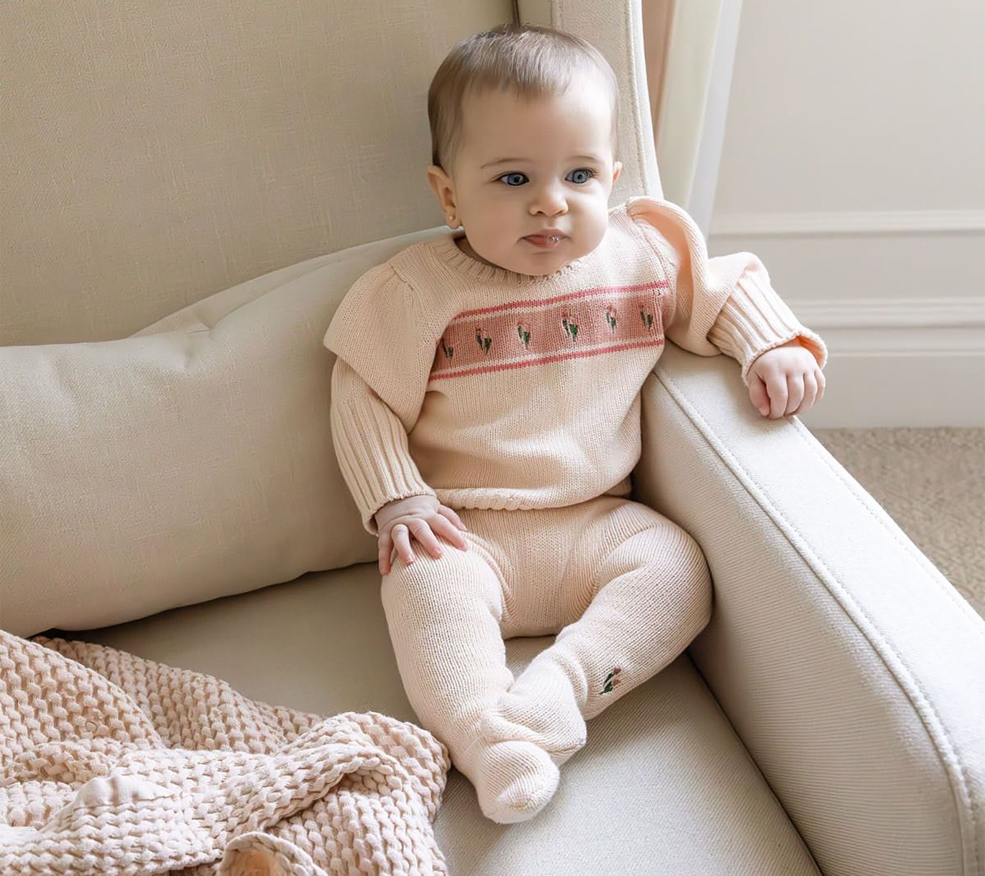 Morning playdates and afternoon naps call for this sweet footed legging set. Soft knit fabric keeps little ones comfortable while the tulip-inspired pattern adds cheerful flair, making dressing up for any cozy moment simply delightful. From MiniMoi.