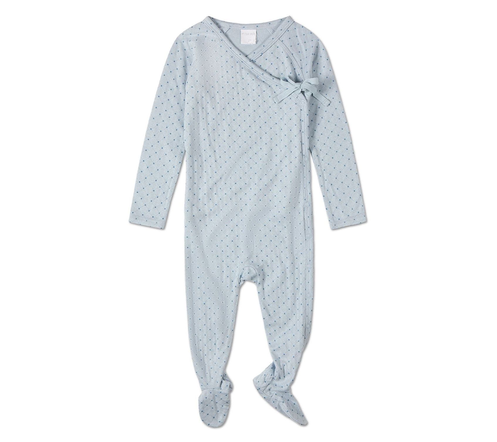 Keeping your little one cozy and comfy is a breeze with this adorable footie set. Meticulously crafted with luxurious rayon made from bamboo for maximum softness, it’s designed with a pointelle pattern for comfort. The wrap-style neck adds an extra touch of ease for your child. From MiniMoi.