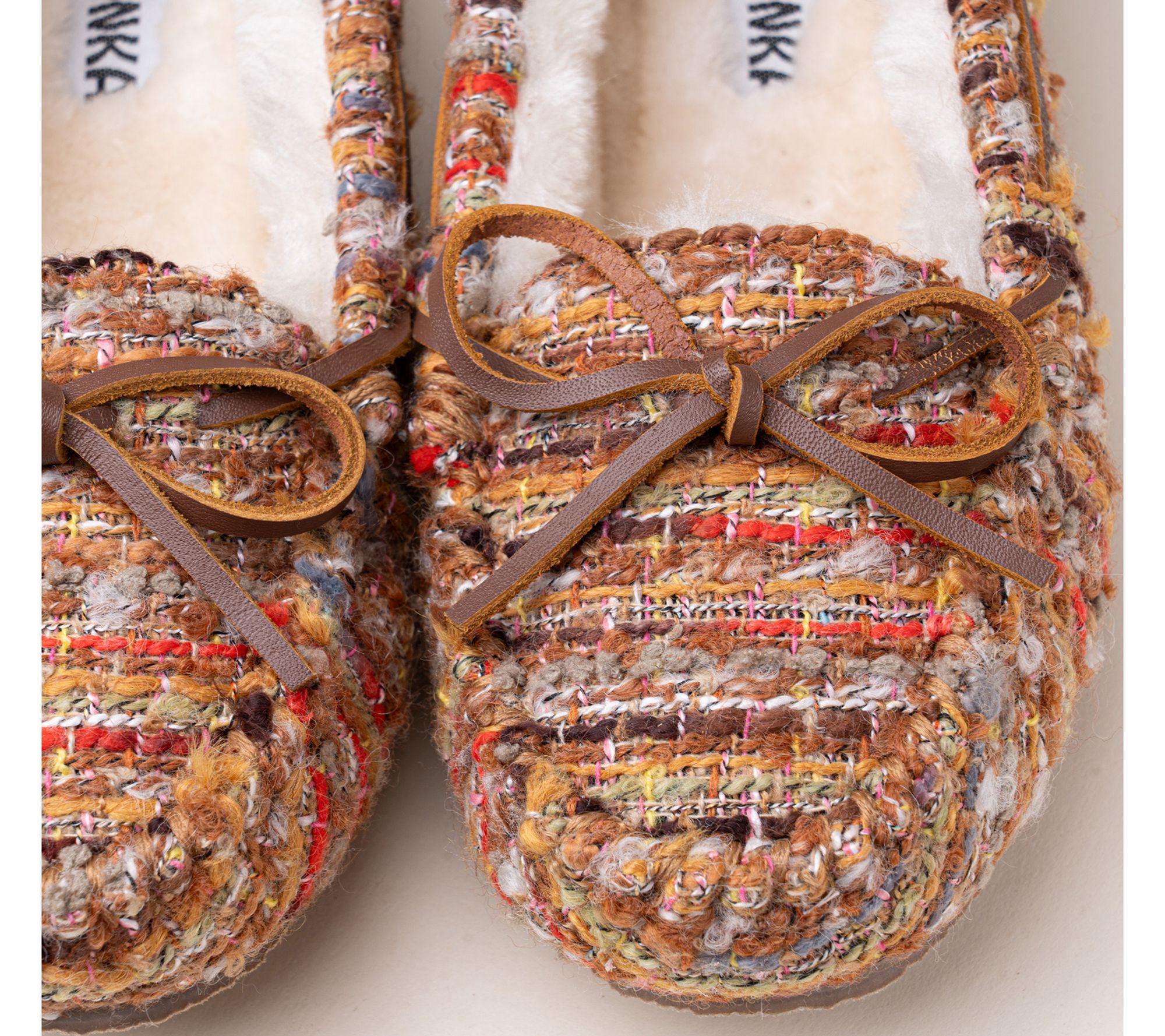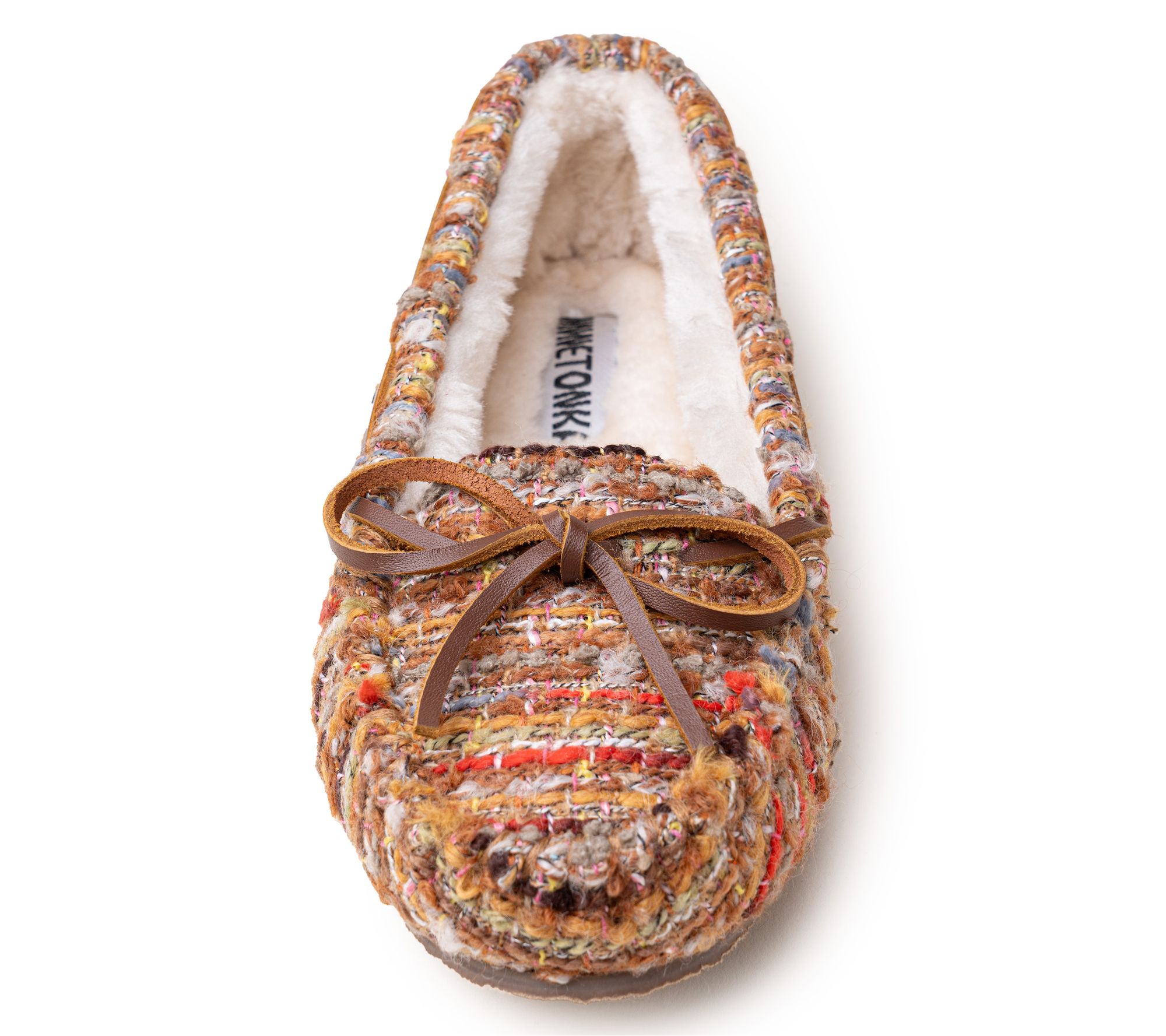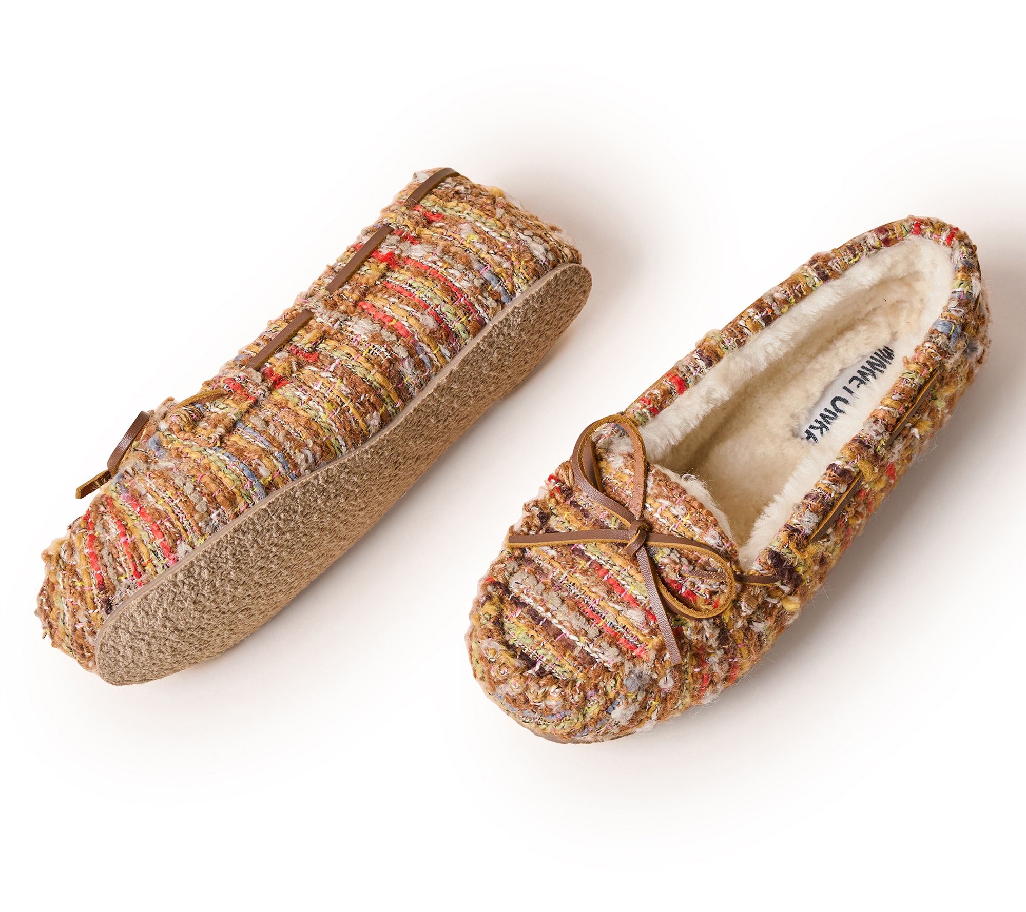 Whether you're curling up at home or making a quick coffee run, these Cally slippers surround your feet with plush pile lining and easy slip-on comfort. The classic rounded toe and thin rubber sole let you move from the couch to the mailbox without skipping a beat. From Minnetonka.