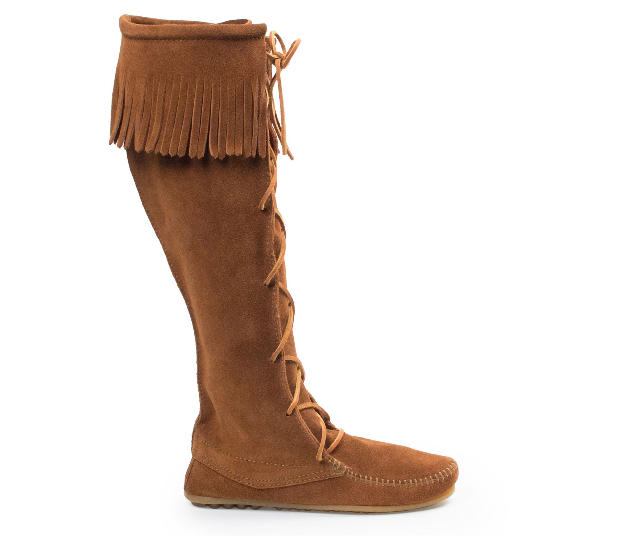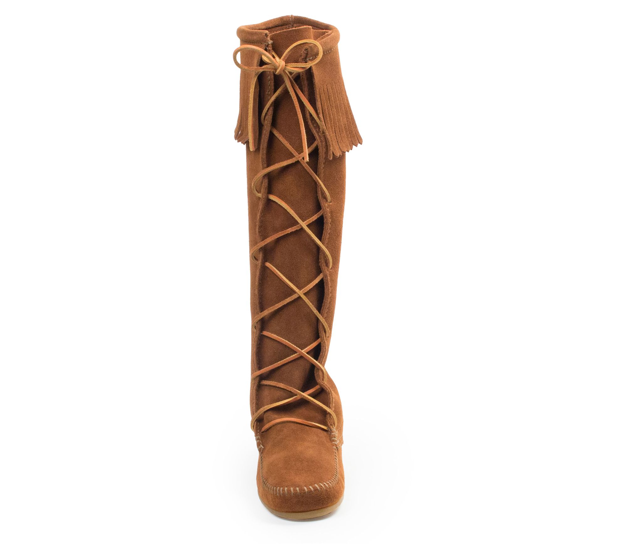You've got legs--and you know how to accessorize them! So, of course you're going to sashay into fall wearing these hot, knee-high boots. Supple suede leather, a show-stopping lace-up design, and fringe details make them a boot that's made for fashionistas. From Minnetonka.