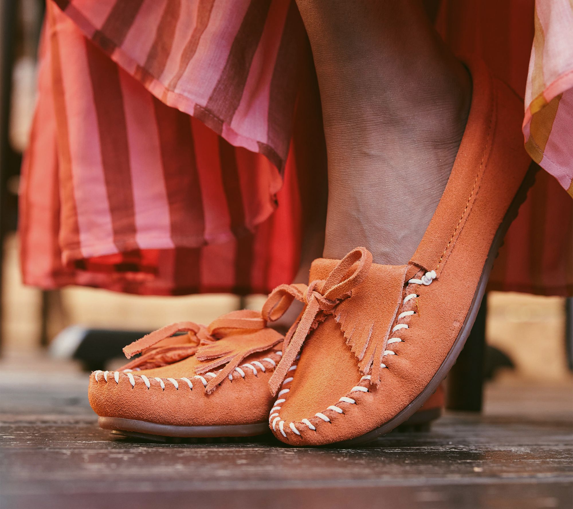 Slip your feet into total comfort when you put on these Kilty suede moccasins, featuring a fun fringe accent, a flexible fit, and plenty of classic style. From Minnetonka.