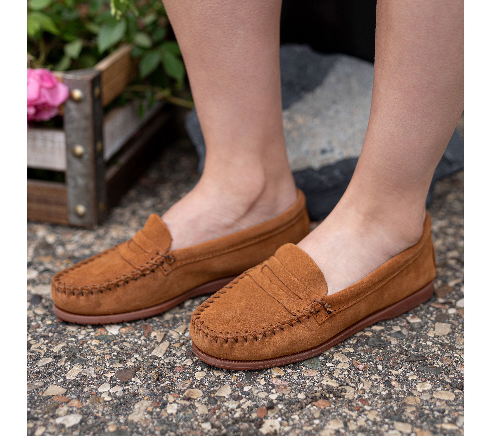 Whether you're heading to the office or meeting friends for brunch, these Minnetonka Womens Mellony Penny Suede Loafers deliver both style and comfort in every step. Crafted from ultra-soft suede, they provide a snug fit while the classic design pairs effortlessly with any outfit in your wardrobe. The lightweight sole ensures you stay comfortable all day long. From Minnetonka.