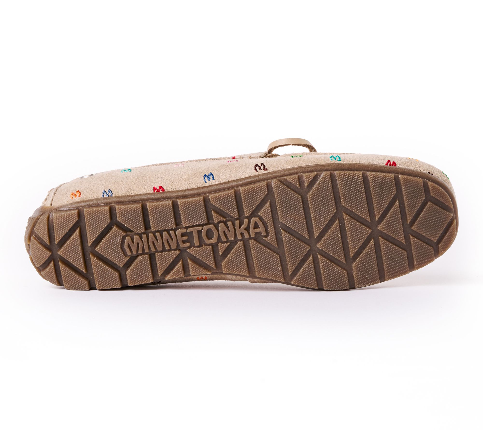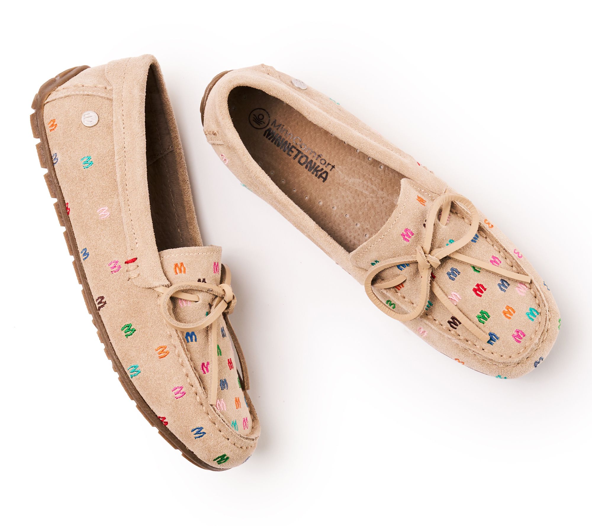 Slip on these embroidered suede loafers for easygoing style that transitions seamlessly from brunch to busy workdays. The supple leather lining and removable cushioned footbed provide customized comfort, while a flexible sole ensures your stride stays effortless. Designed to add a luxe vibe to everyday plans. From Minnetonka.