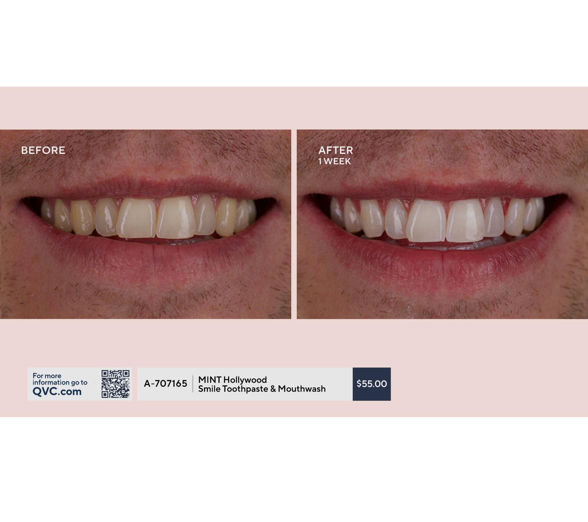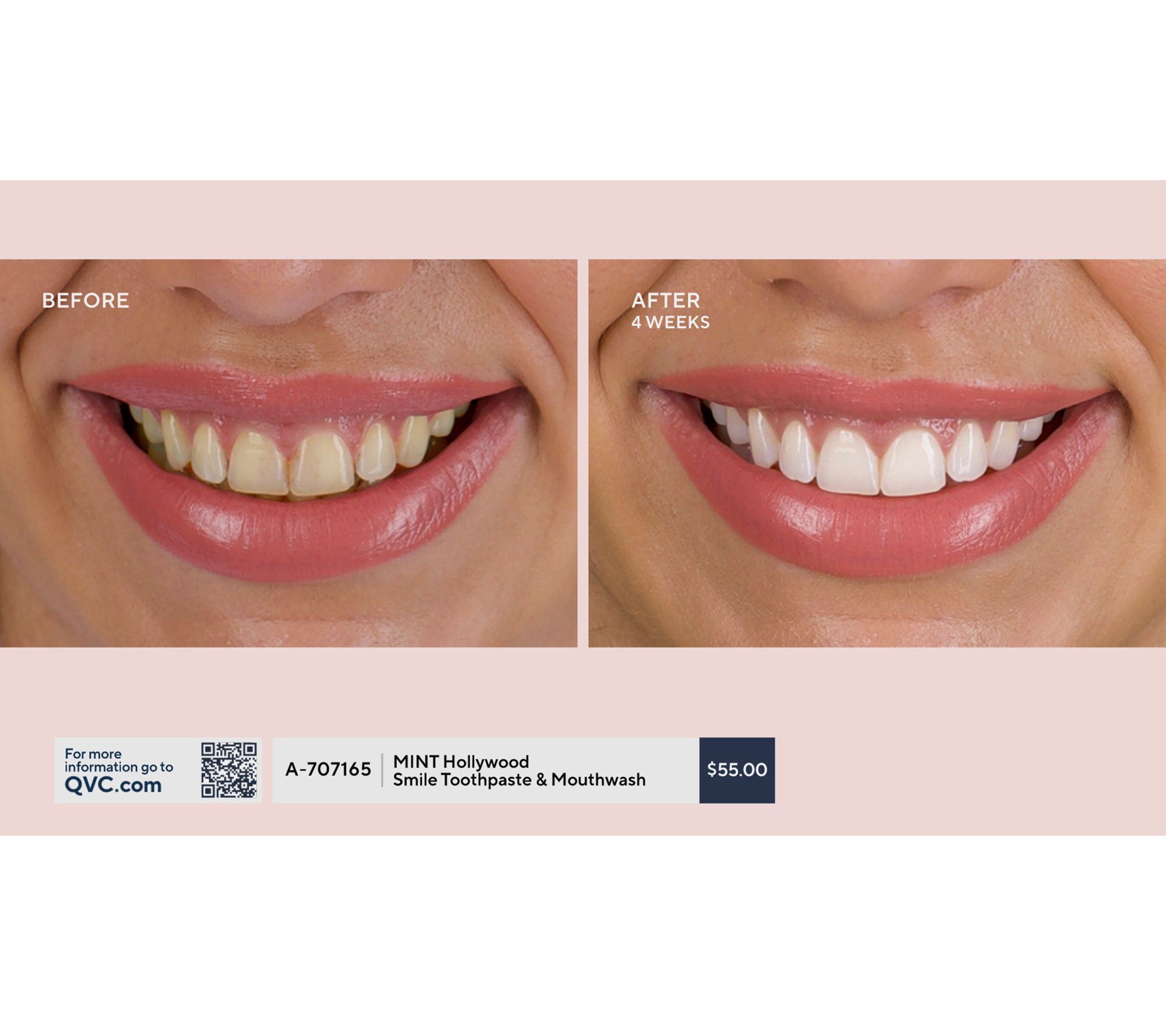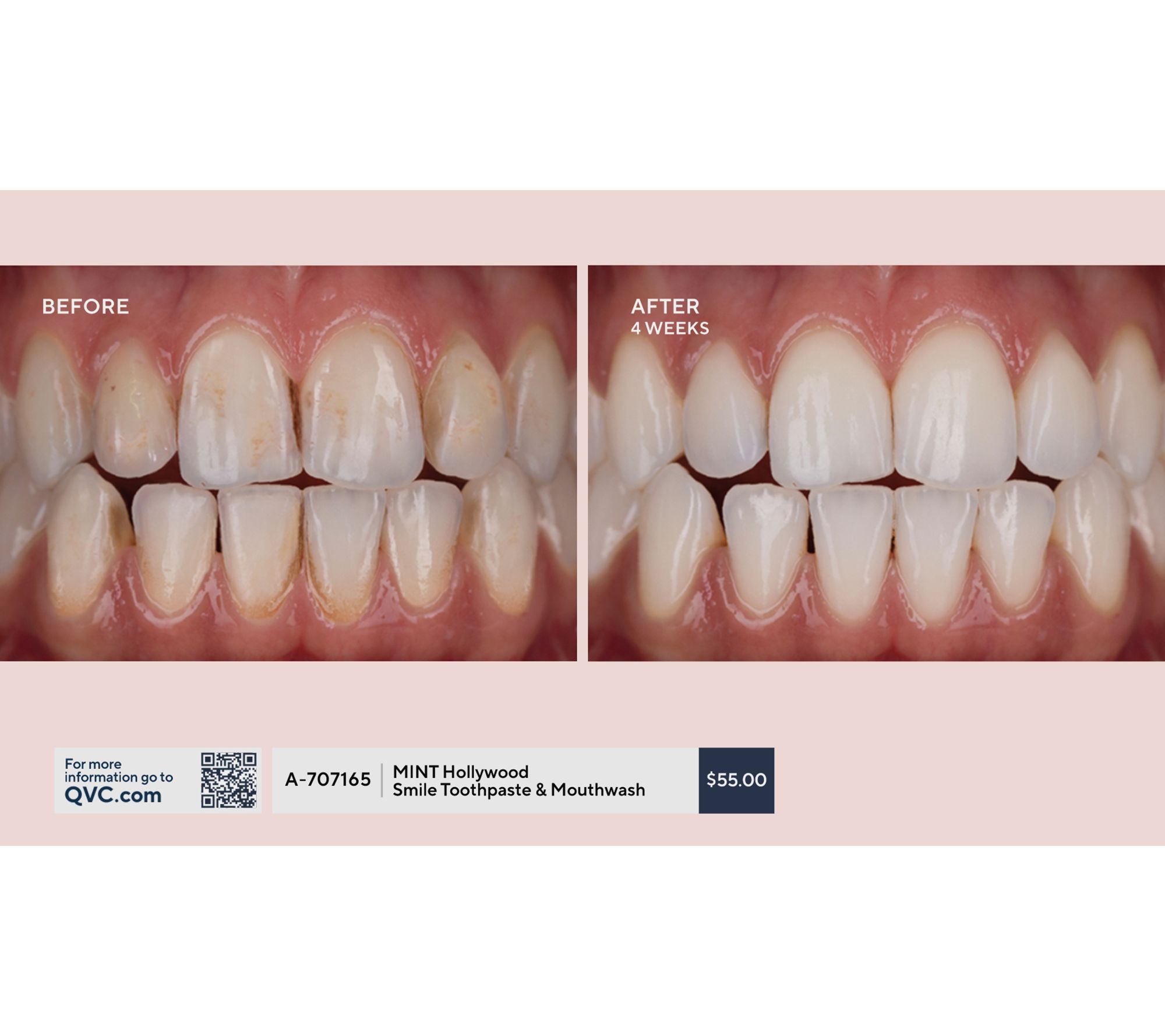 Discover your brightest smile with this powerful duo from MINT by Dr. Mintcheva -- expertly formulated to elevate your daily oral-care routine. Engineered for radiant results, the Hollywood Smile Toothpaste features a two-phase whitening system powered by patented PAP technology and MPT1 Ultra Polish Technology. With continued use, the combination of phthalimid-peroxo-caproic-acid (PAP) and perlite-based polishing agents helps remove surface stains and supports visibly whiter teeth -- all without high abrasivity. Key ingredients, like hydroxyapatite, help temporarily brighten the teeth. Formulated with menthol and eucalyptol, it delivers a clean-looking, refreshing feel after every brush.