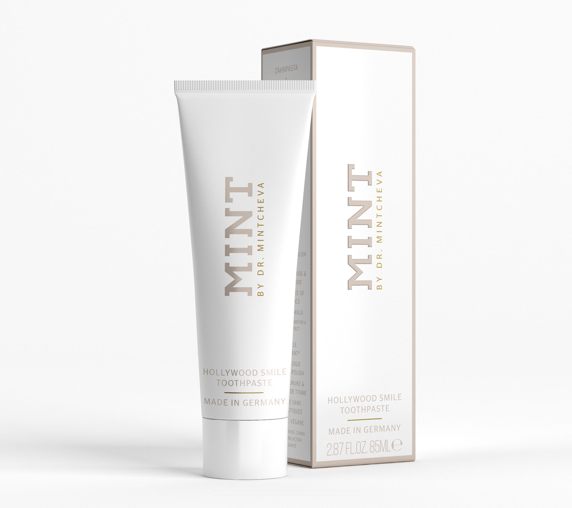 Discover your brightest smile with this powerful duo from MINT by Dr. Mintcheva -- expertly formulated to elevate your daily oral-care routine. Engineered for radiant results, the Hollywood Smile Toothpaste features a two-phase whitening system powered by patented PAP technology and MPT1 Ultra Polish Technology. With continued use, the combination of phthalimid-peroxo-caproic-acid (PAP) and perlite-based polishing agents helps remove surface stains and supports visibly whiter teeth -- all without high abrasivity. Key ingredients, like hydroxyapatite, help temporarily brighten the teeth. Formulated with menthol and eucalyptol, it delivers a clean-looking, refreshing feel after every brush.