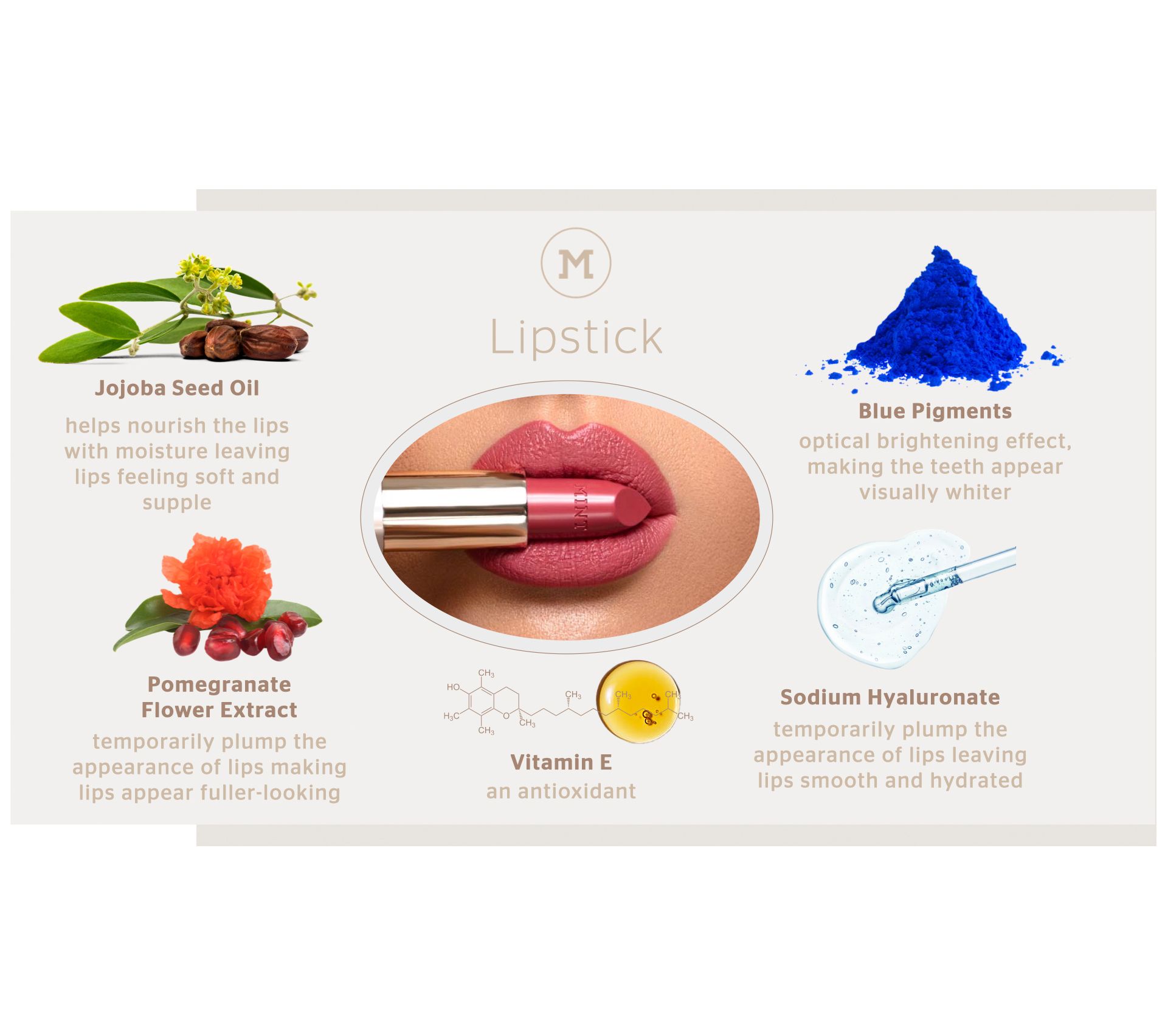 Enjoy soft moisture, fuller-looking lips, and an optical brightening effect for your smile with this lipstick duo. The lipsticks combine nourishing care with natural-looking color and a subtle effect. They contain vitamin E, an antioxidant that may help fight against free-radical aggressors, while sodium hyaluronate delivers the look of a temporary plumping effect that smooths and hydrates the lips for a fuller appearance. To subtly enhance the brightness of your smile, both shades contain blue pigments that help create an optical brightening effect, making the teeth appear visibly brighter. Each lipstick also features Plump Oleoactif, a blend of jojoba seed oil and pomegranate flower extract that nourishes the lips with moisture and temporarily plumps their appearance, making them appear fuller-looking and beautifully defined.