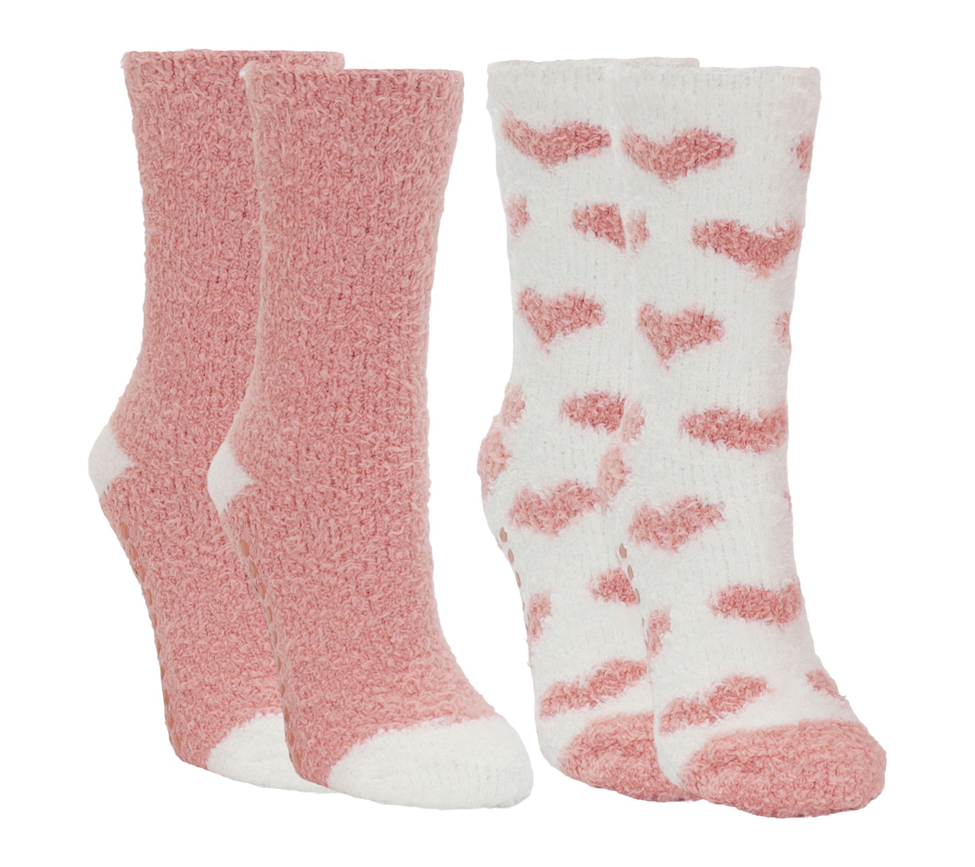 • Includes two pairs of lavender-scented slipper socks and one pink plush heart keychain